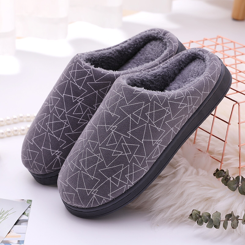 三角形图案男女情侣室内居家家居秋冬季保暖木地板日系棉拖鞋 h