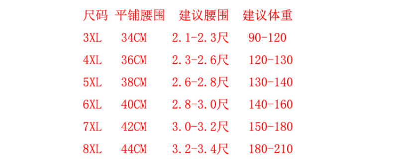 尺码:3XL 4XL 5XL 6XL 7XL 8XL