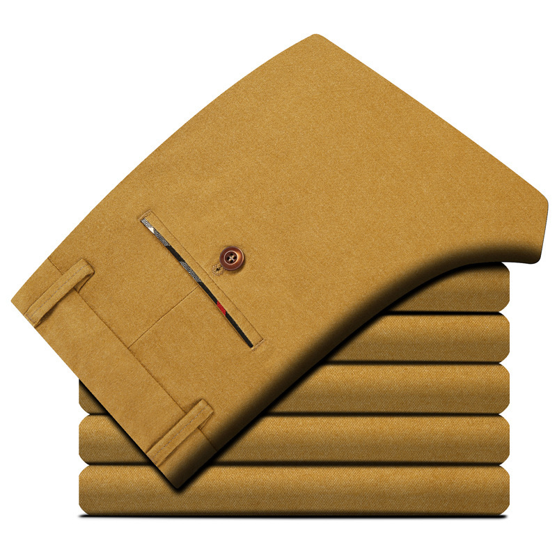 秋季磨毛休闲裤直筒男士韩版弹力商务男裤修身青年男装英伦长裤子