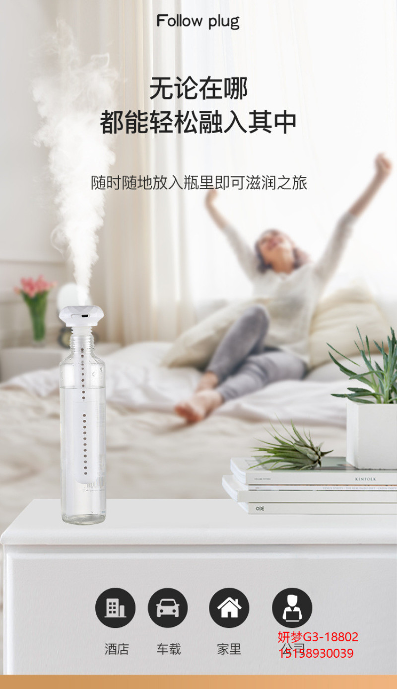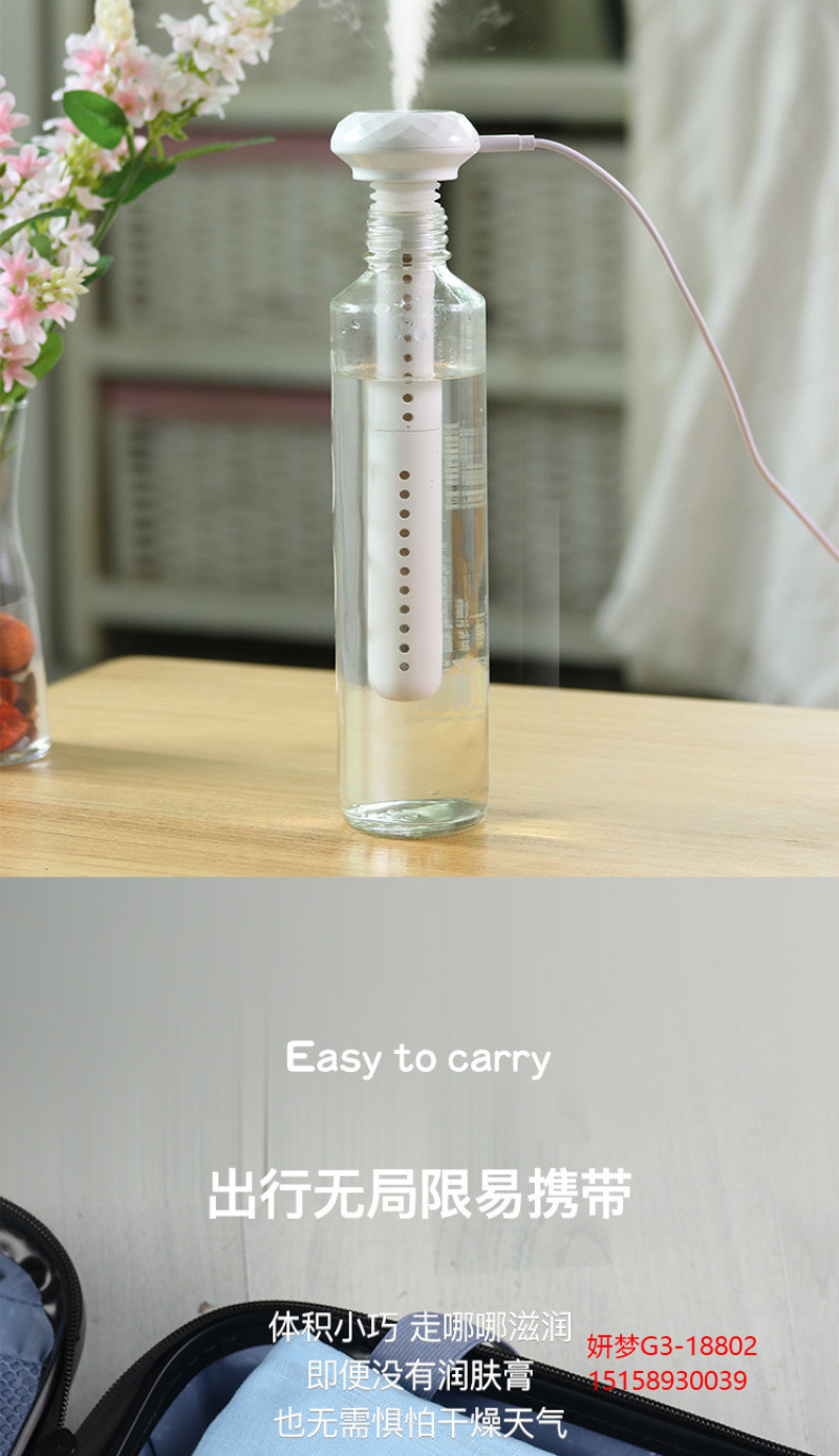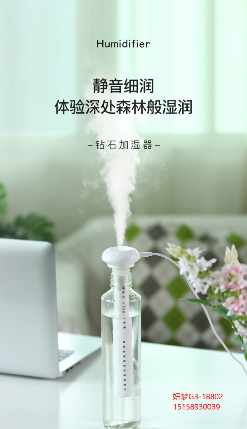 新款 钻石加湿器USB家用车载静音便携式补水雾化器桌面空气净化器