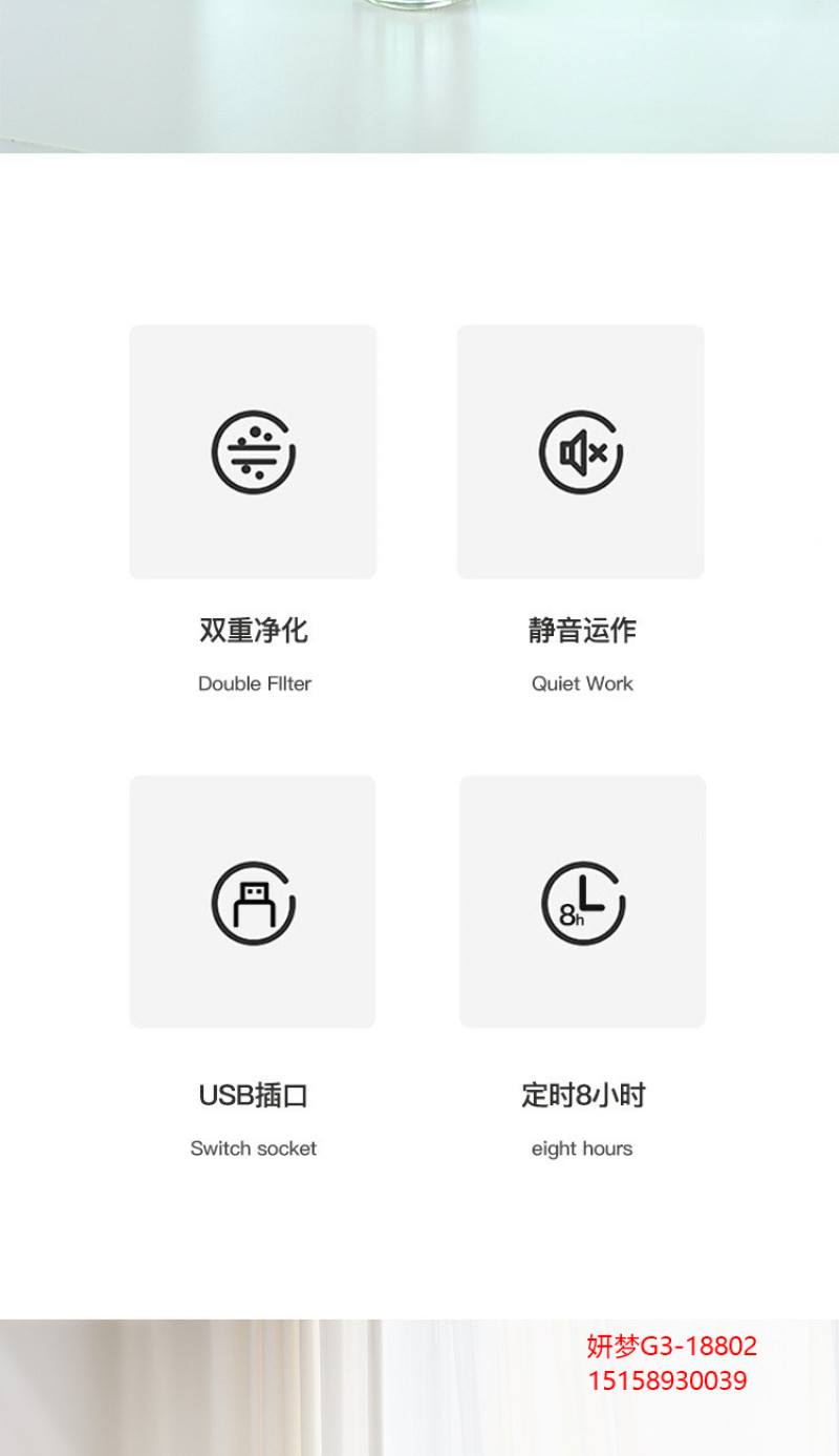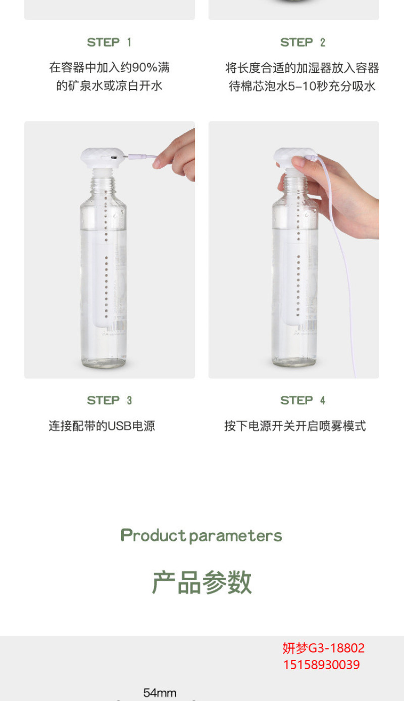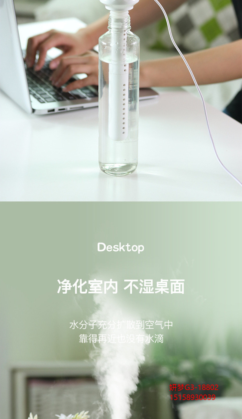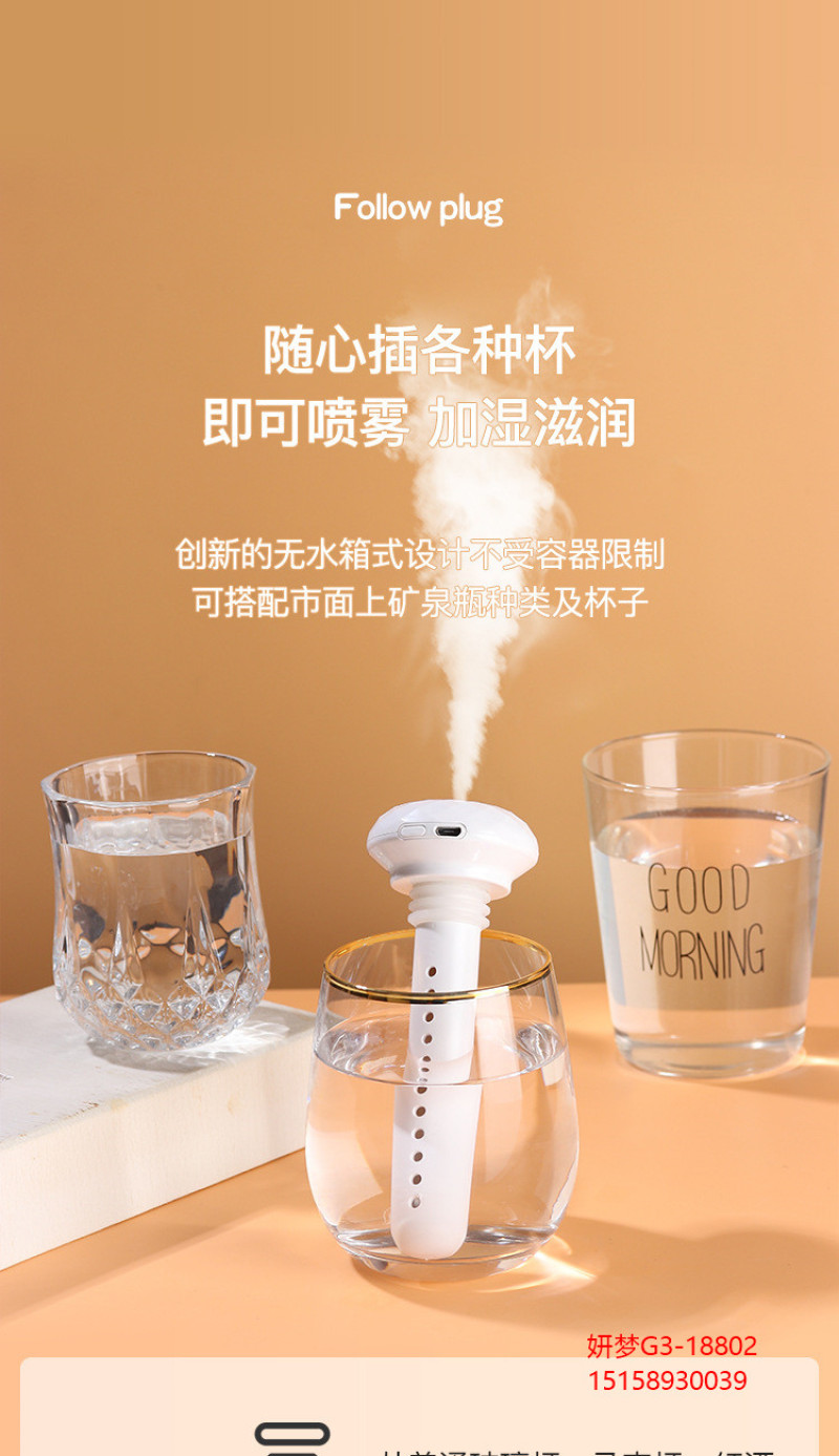 新款 钻石加湿器USB家用车载静音便携式补水雾化器桌面空气净化器