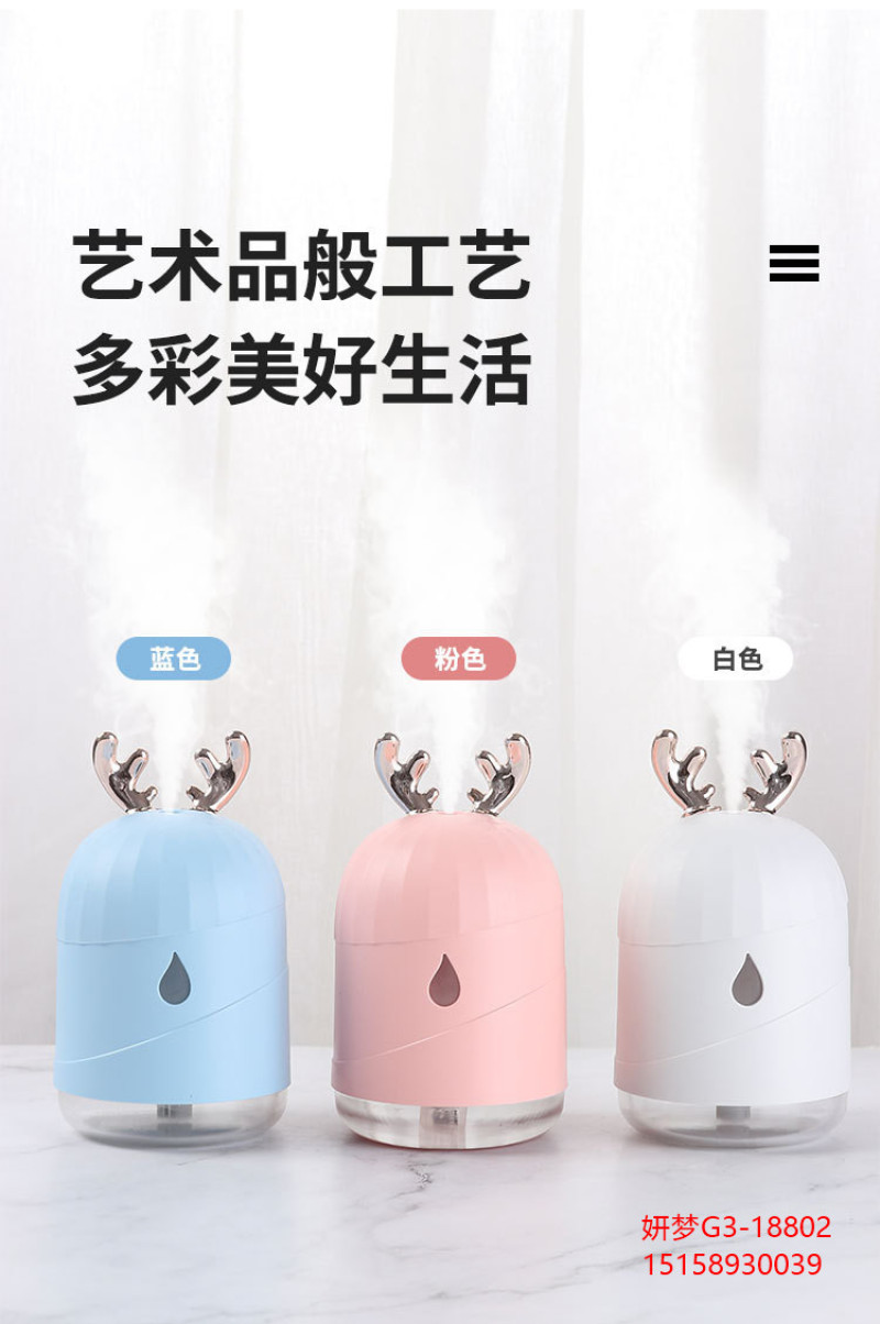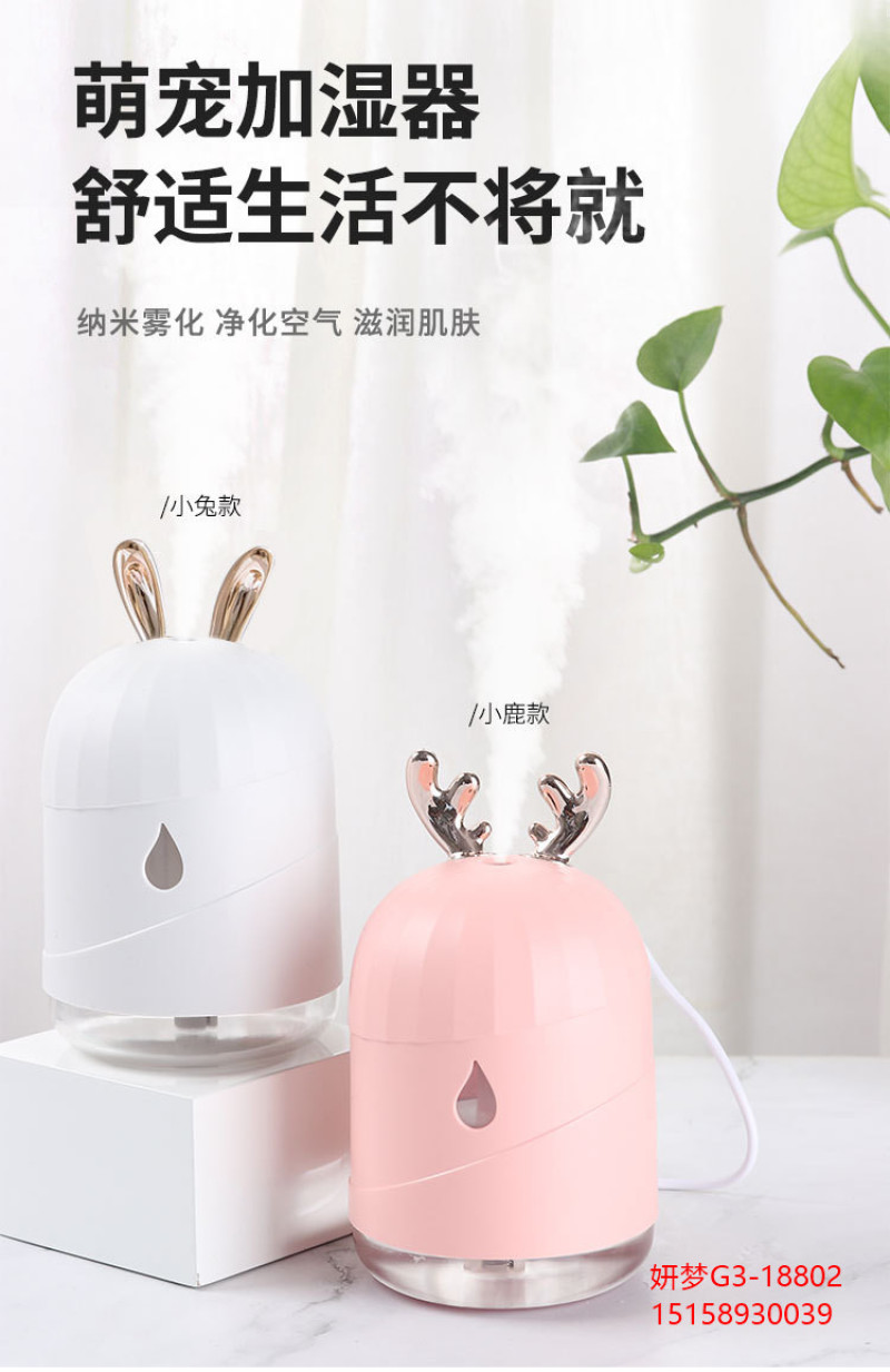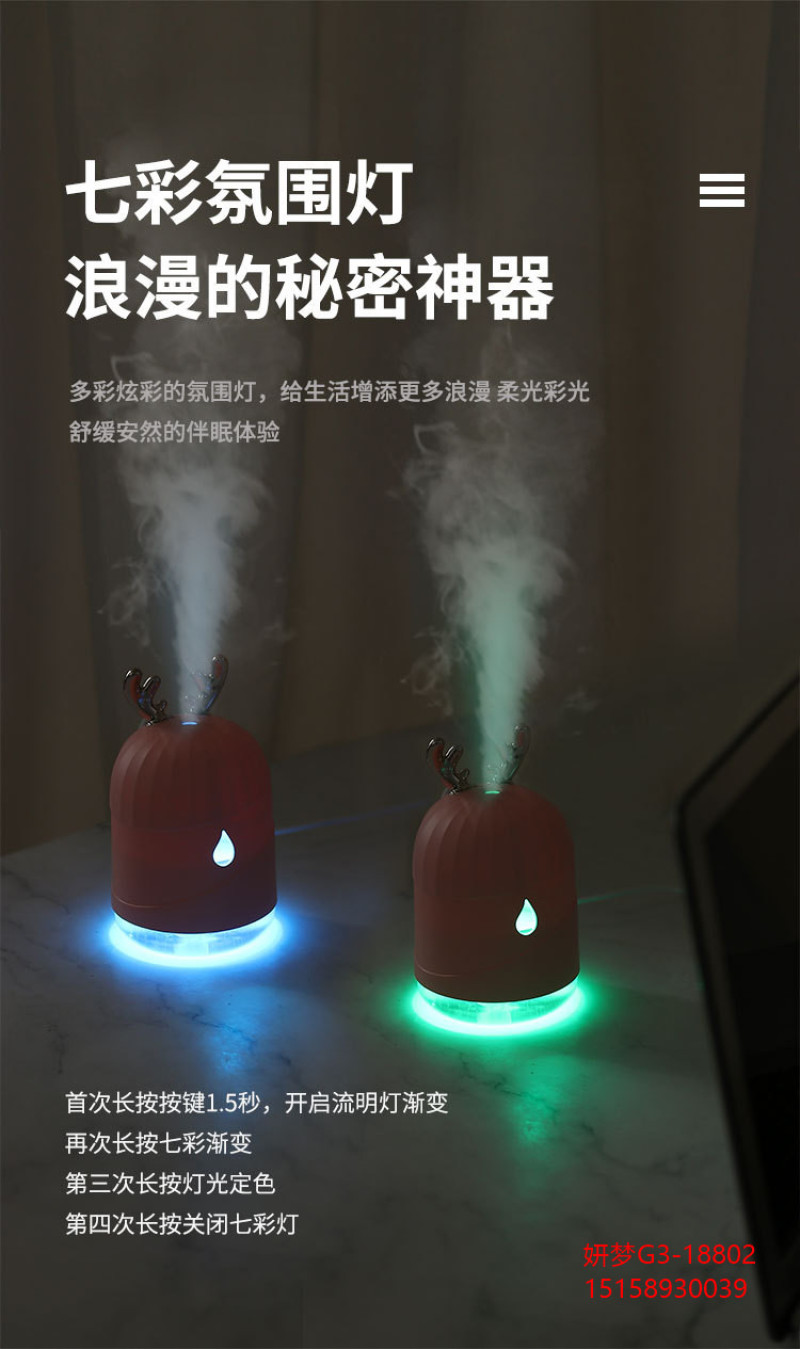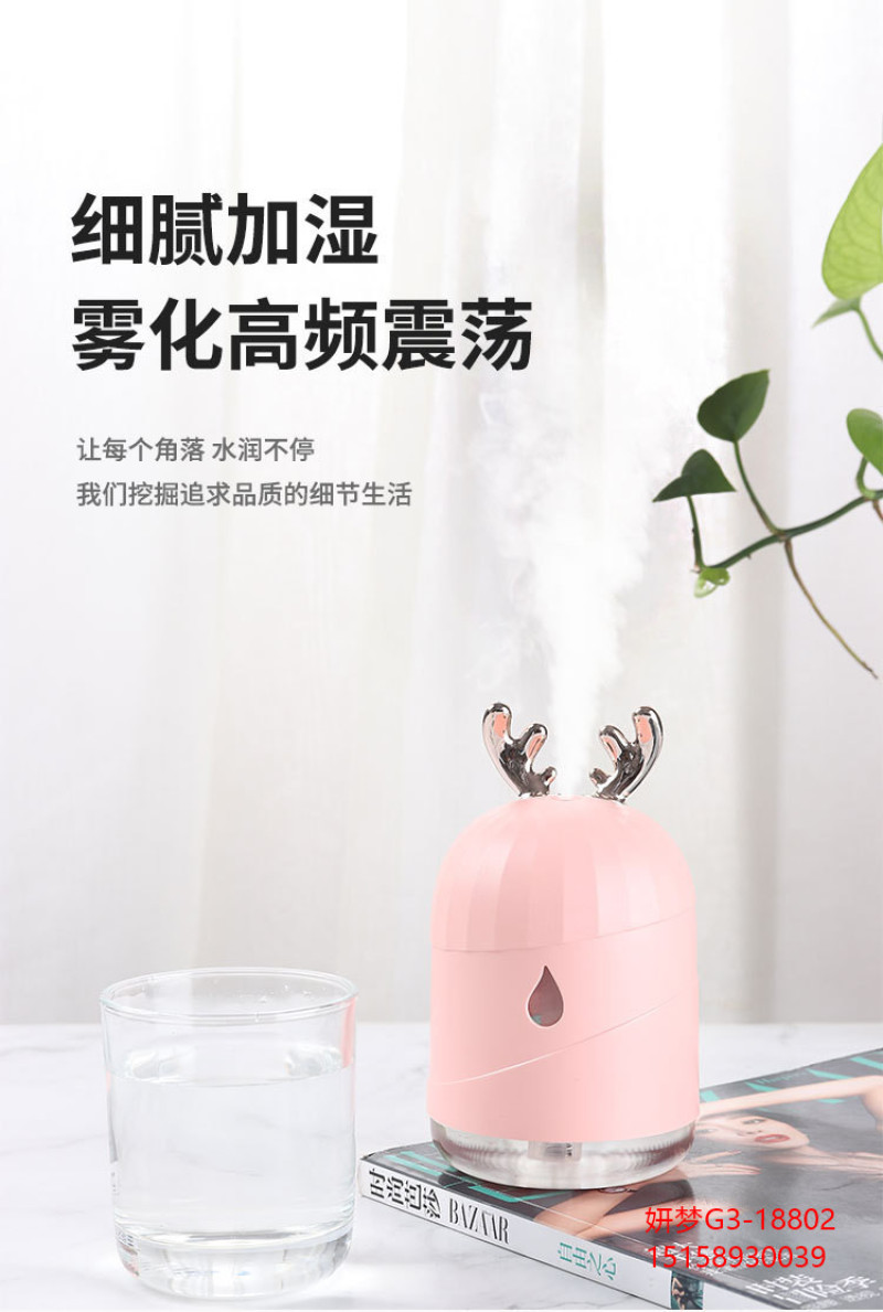 创意加湿器家用鹿角萌宠水滴雾化器usb七彩小夜灯新品车载加湿器