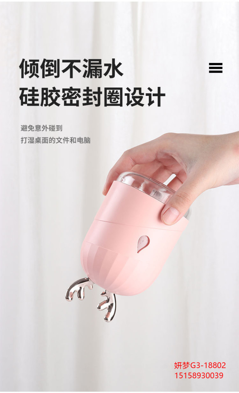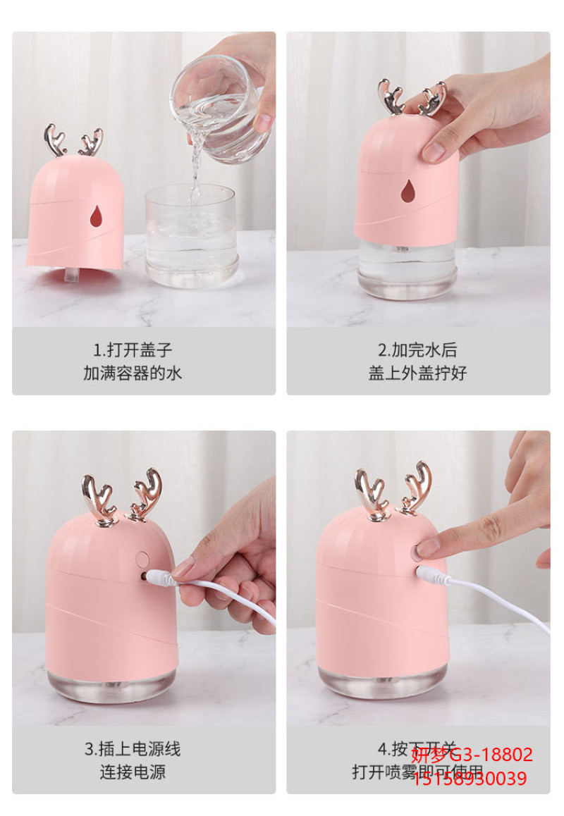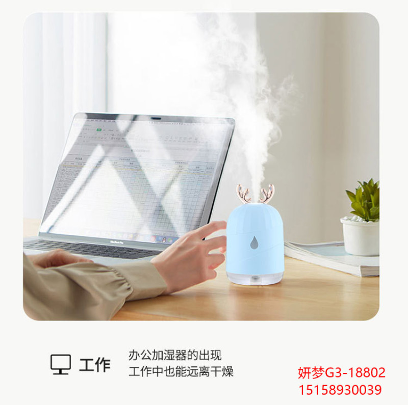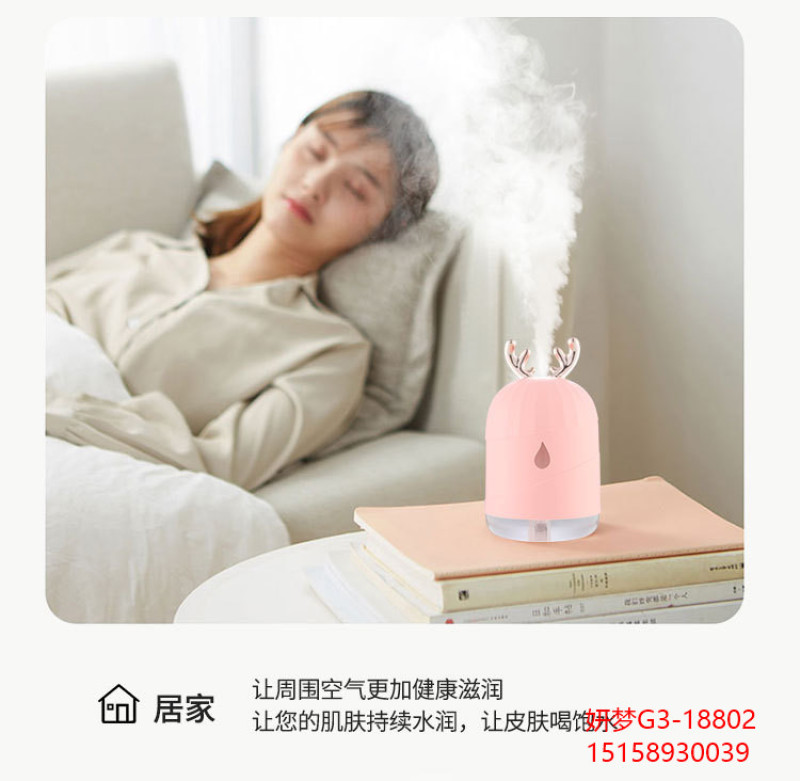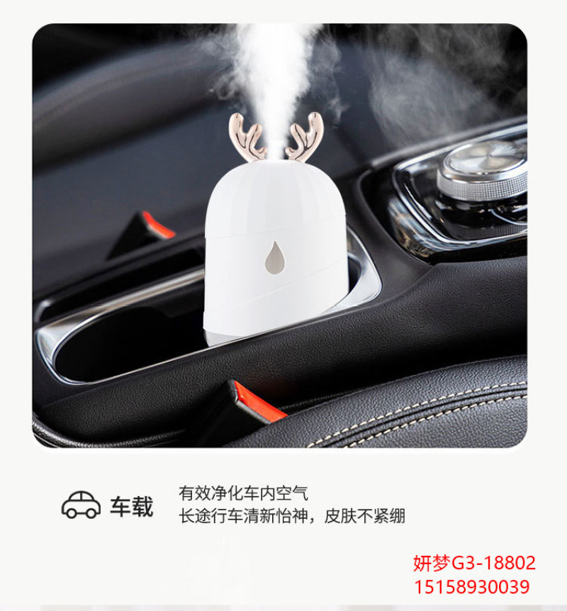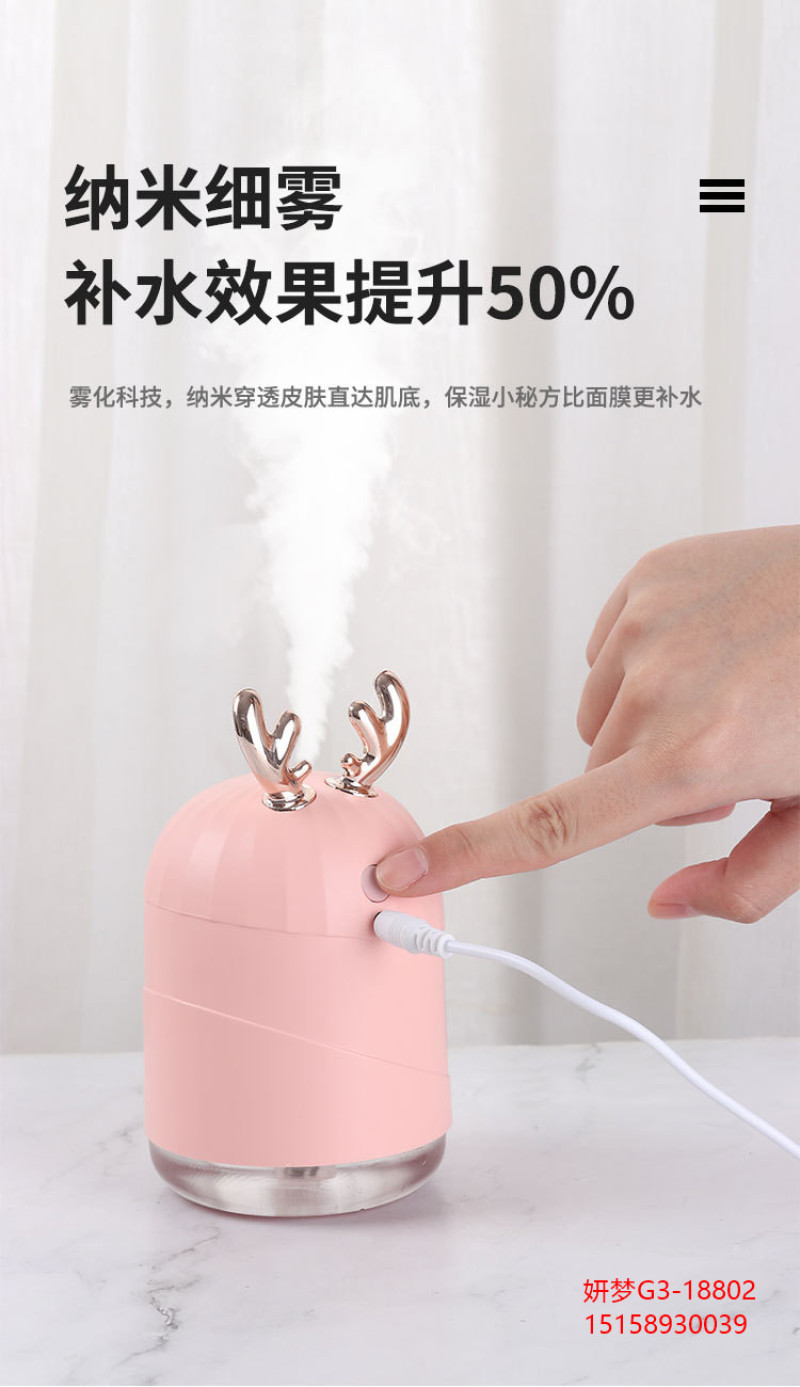 创意加湿器家用鹿角萌宠水滴雾化器usb七彩小夜灯新品车载加湿器