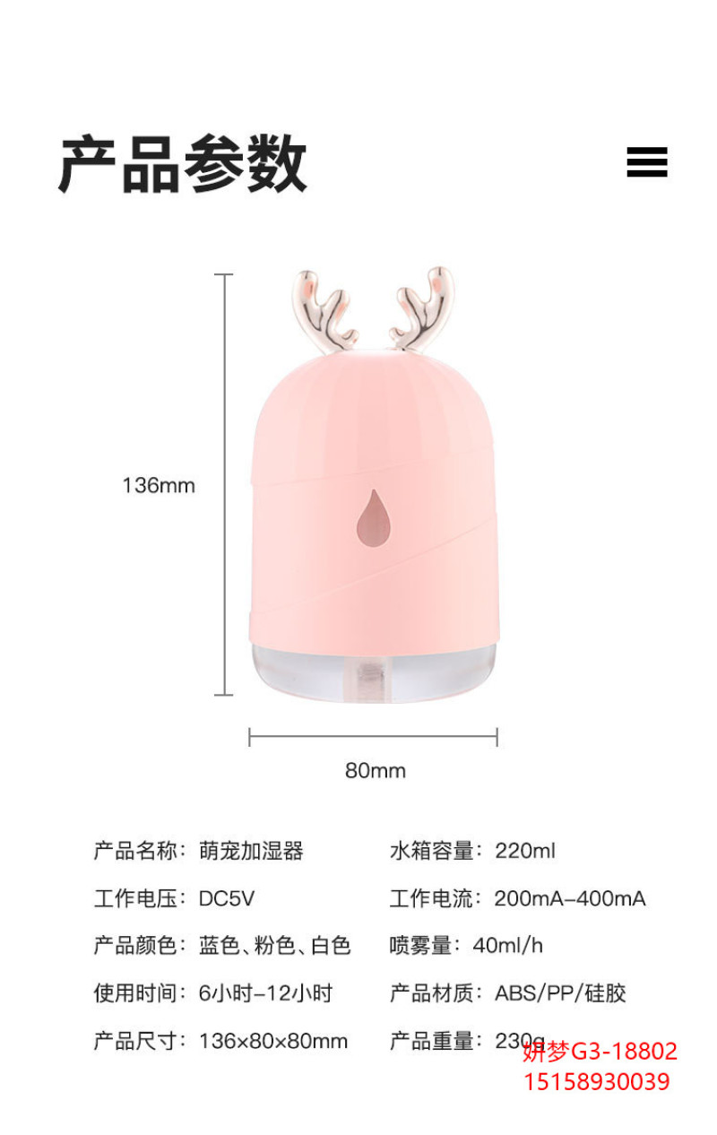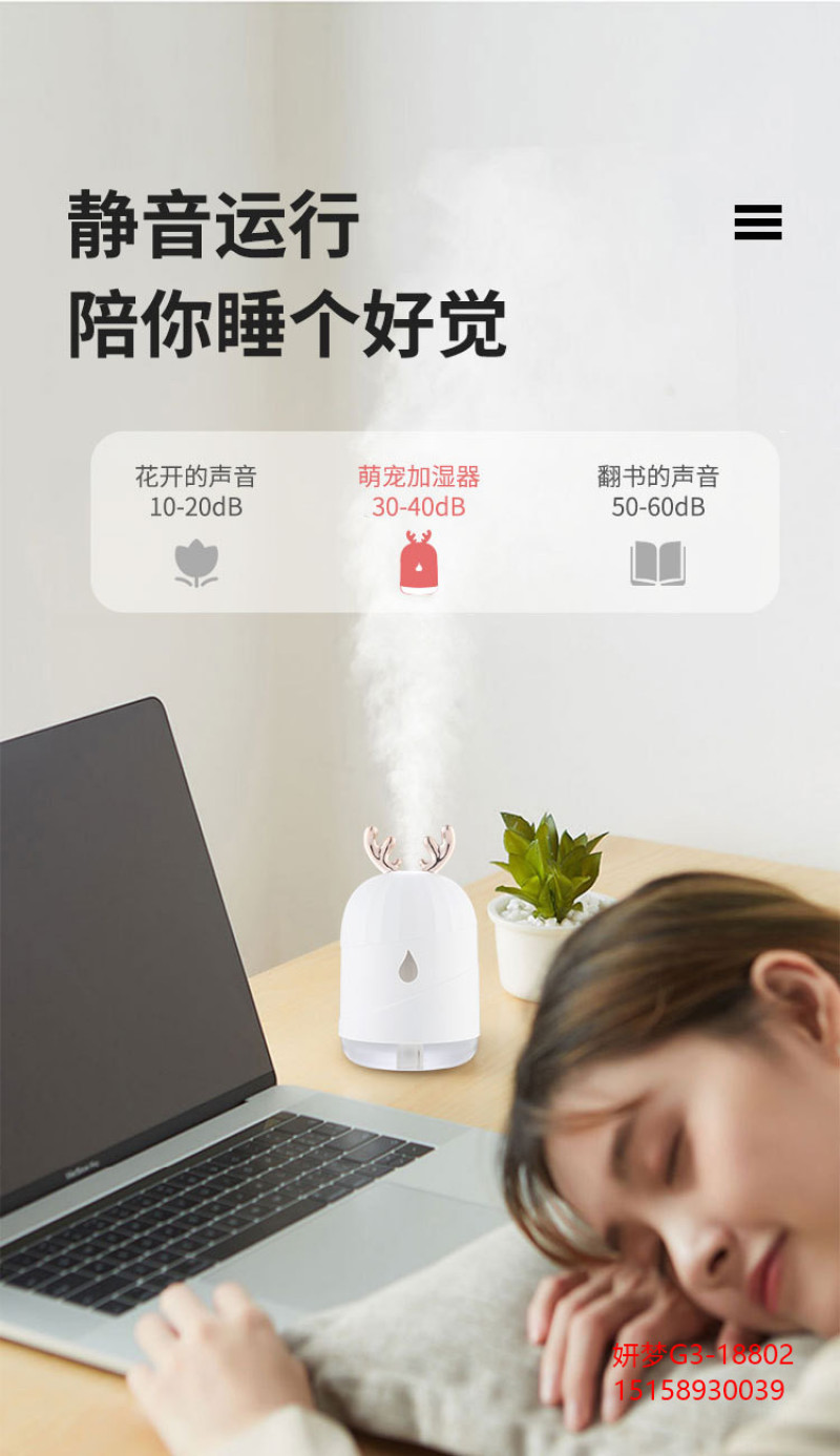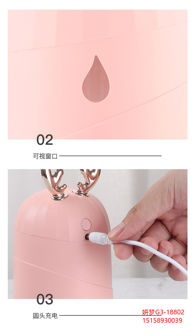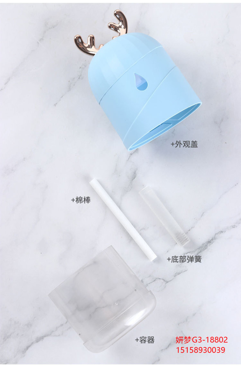 创意加湿器家用鹿角萌宠水滴雾化器usb七彩小夜灯新品车载加湿器