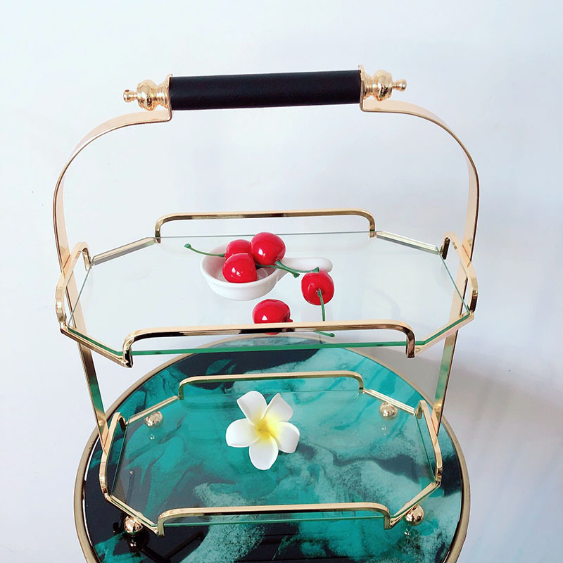 厂家直销 简约金属钢化玻璃二层蛋糕架首饰托盘化妆品架收纳置物