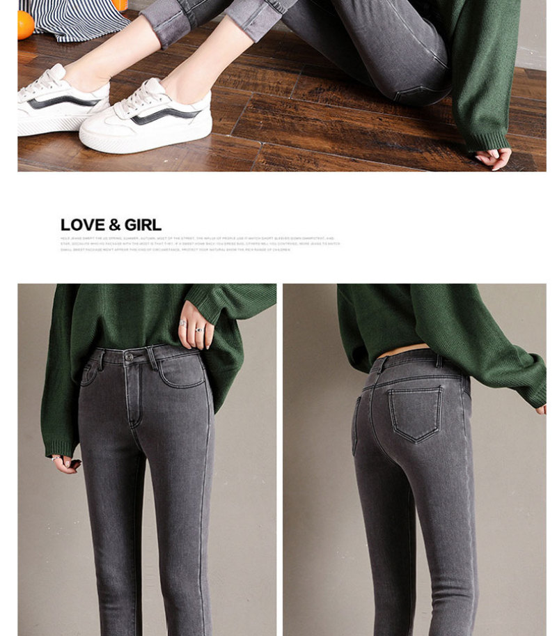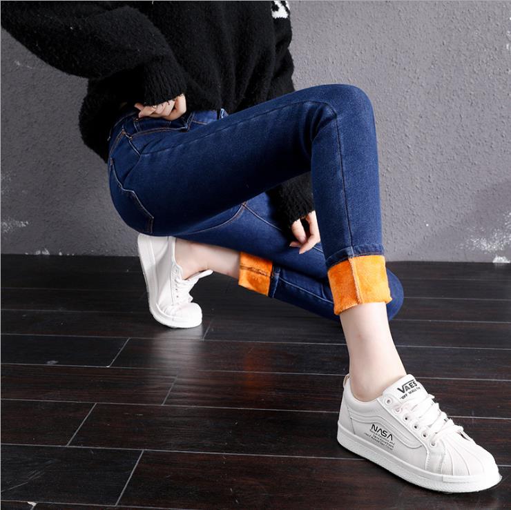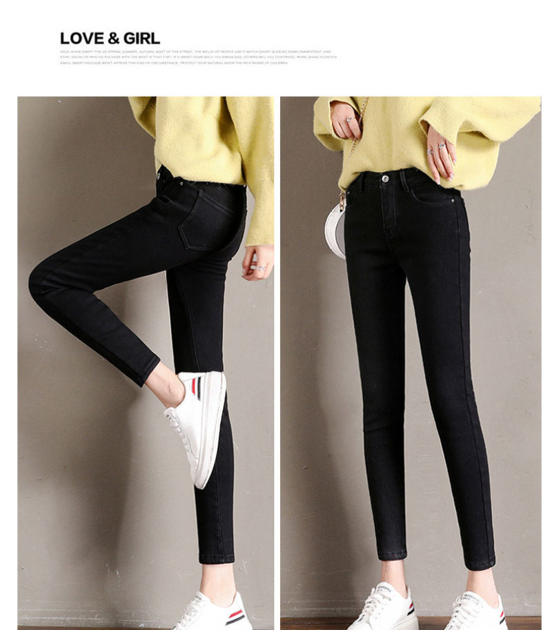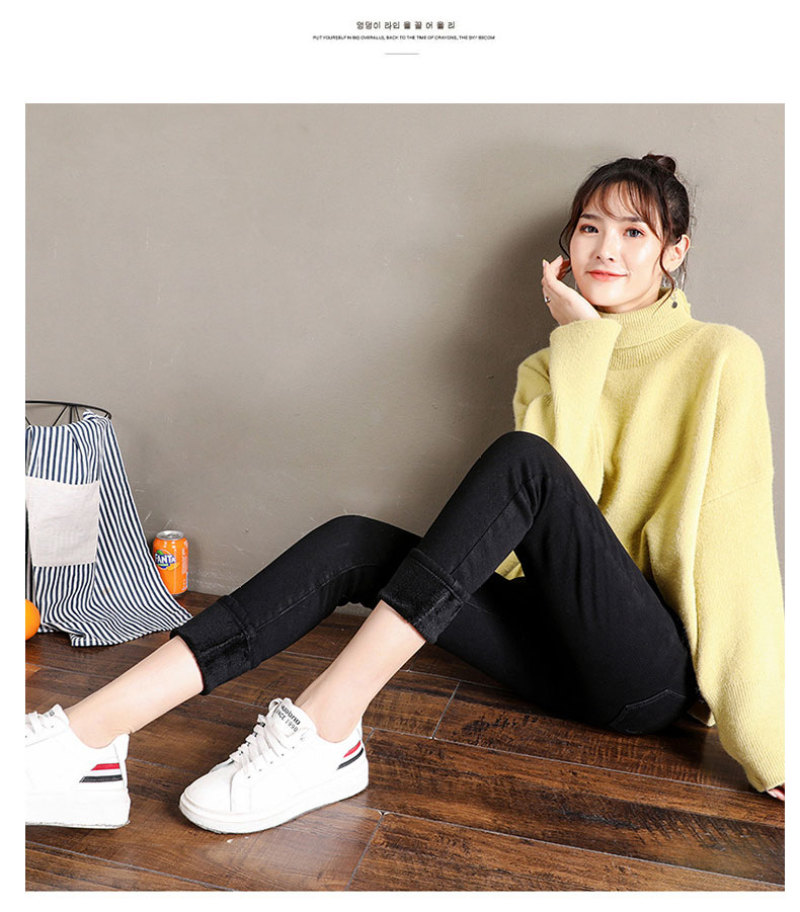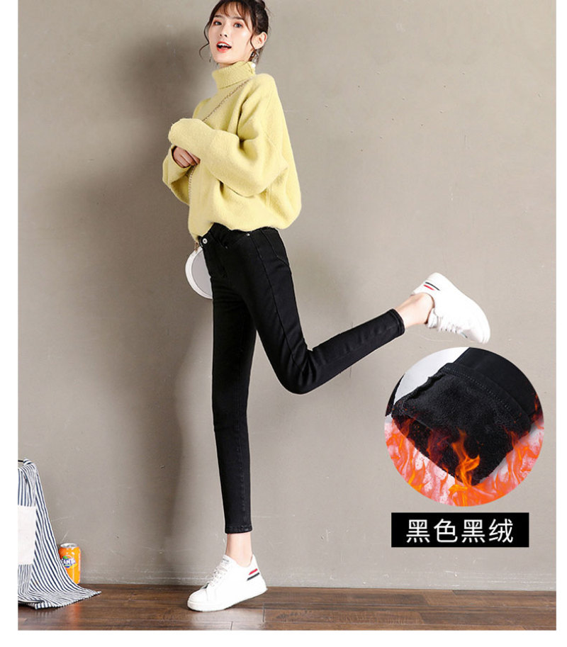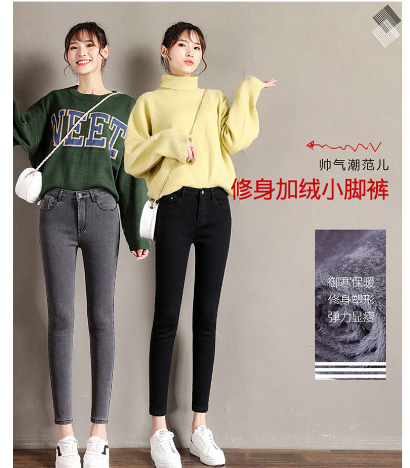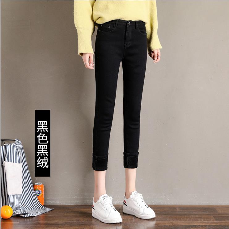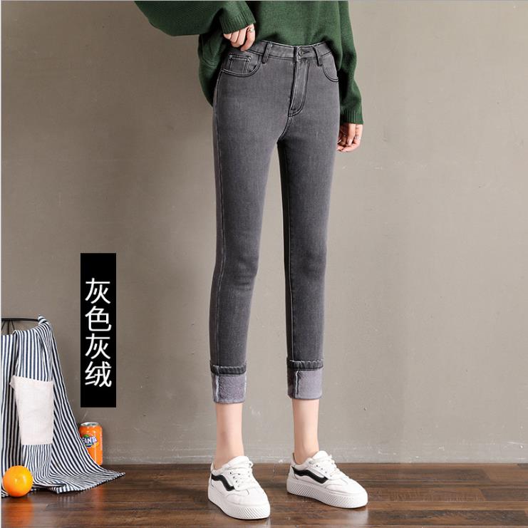 加绒牛仔裤女小脚铅笔裤韩版显瘦五袋款高腰弹力紧身裤子百搭长裤