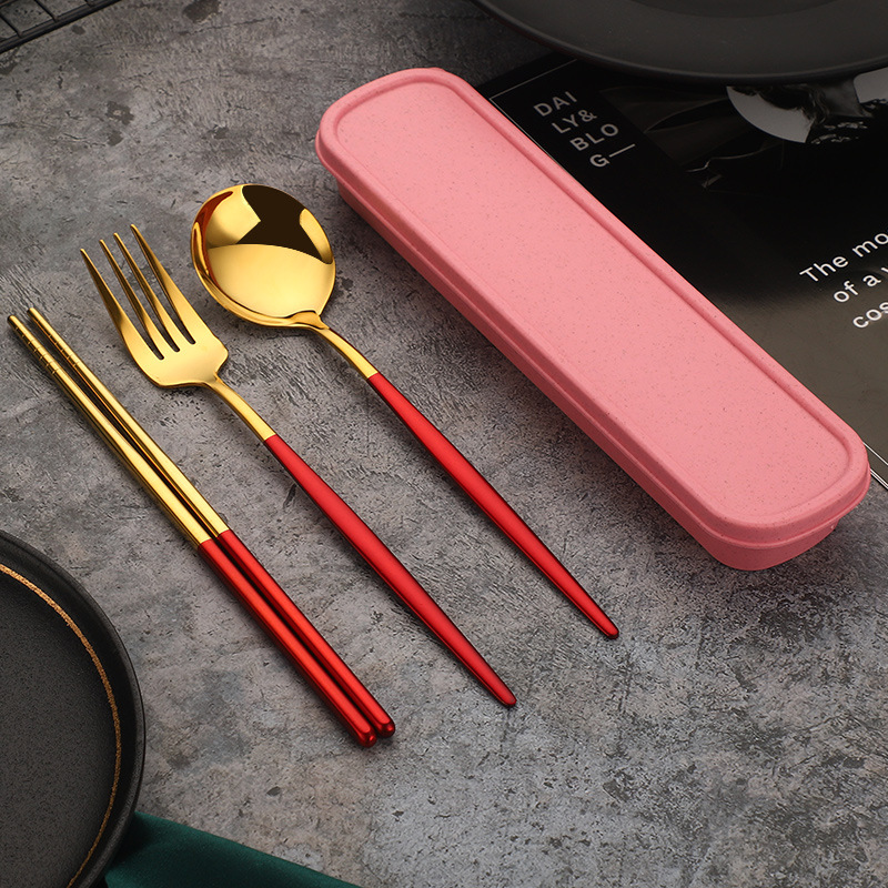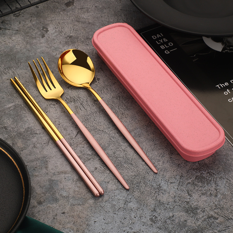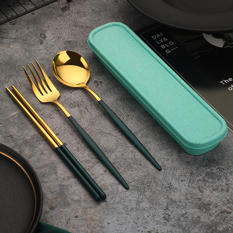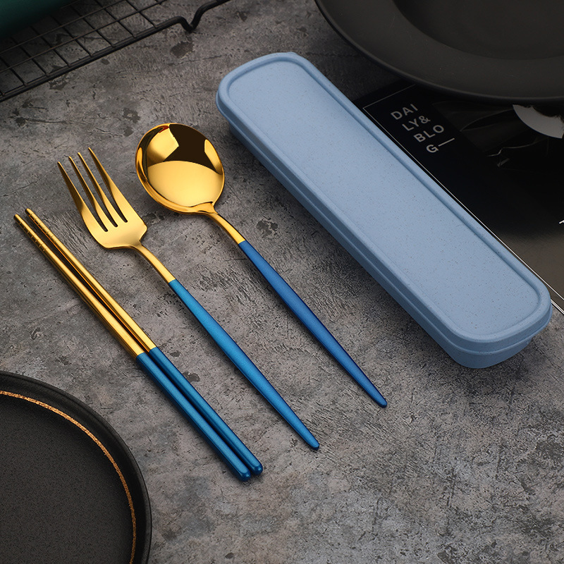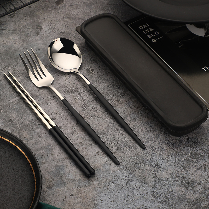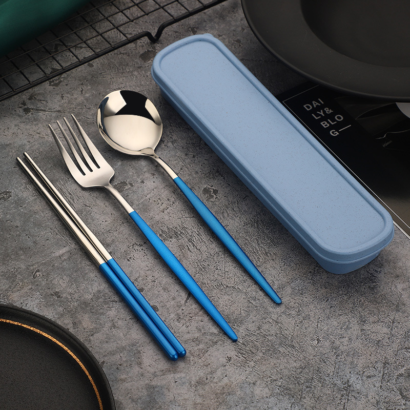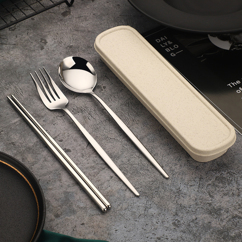 不锈钢餐具套装 葡萄牙便携餐具 学生宿舍勺叉筷子三件套logo定制