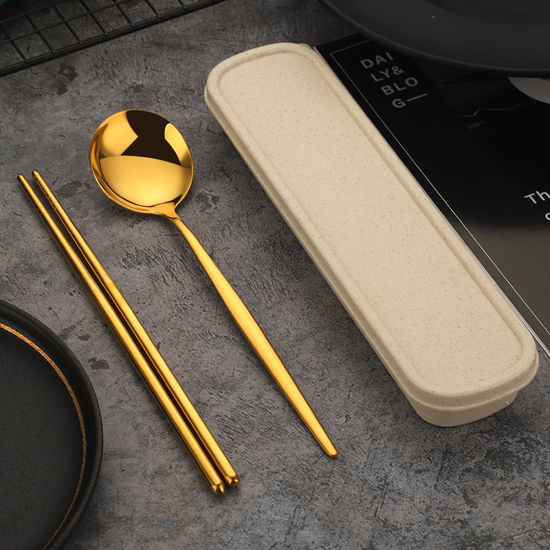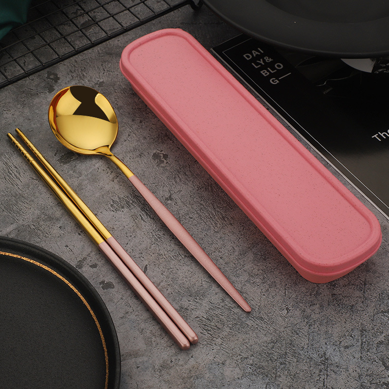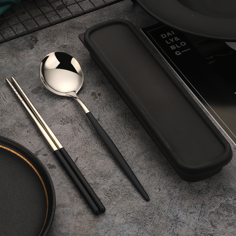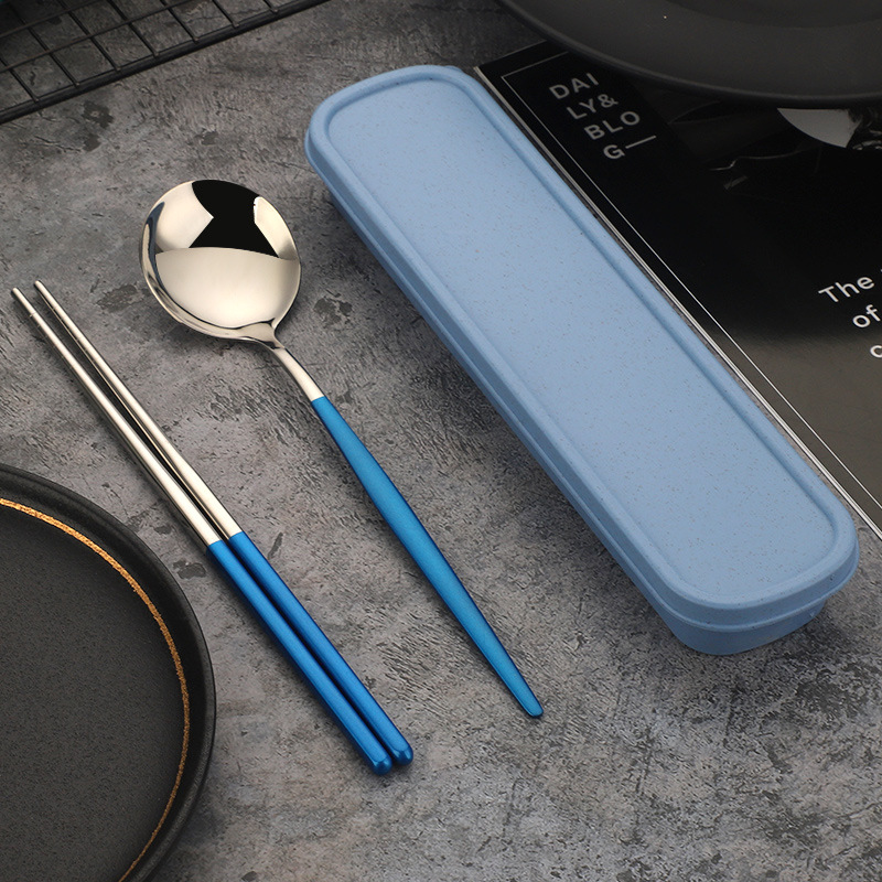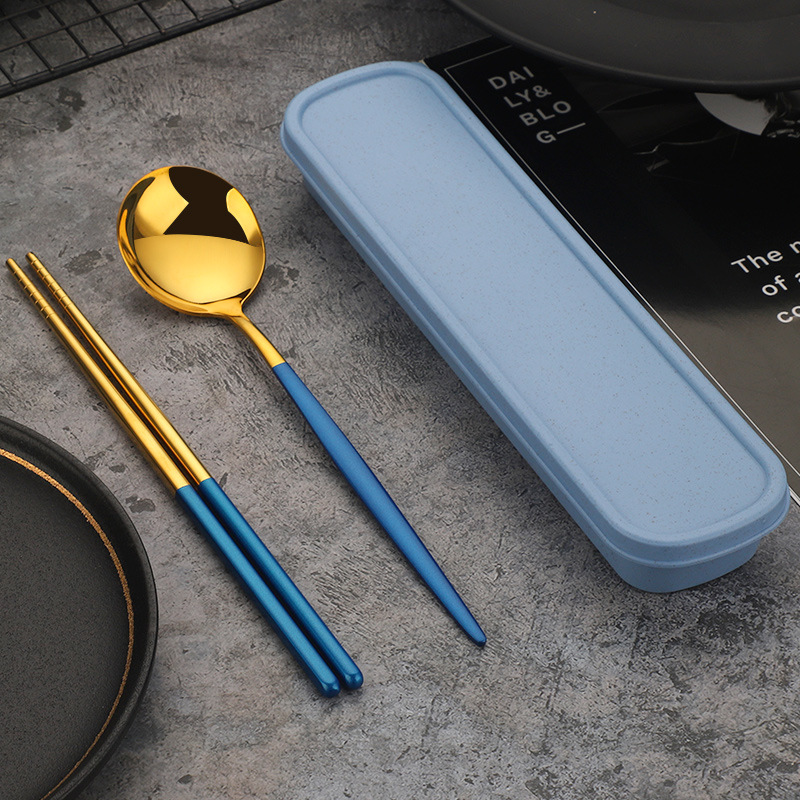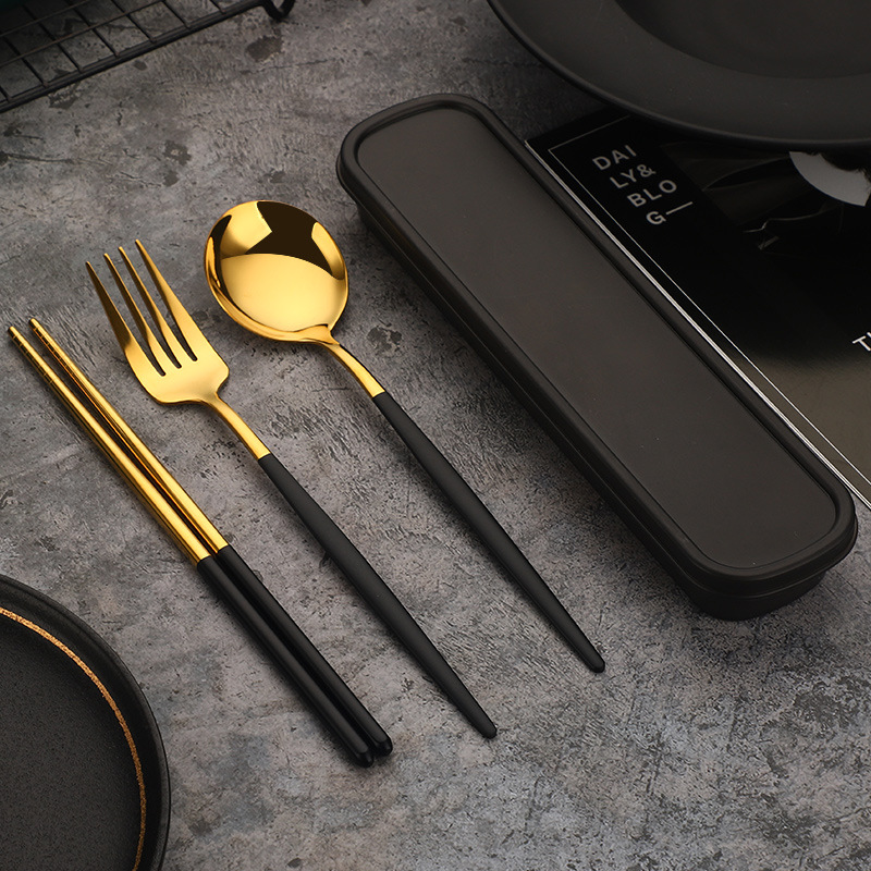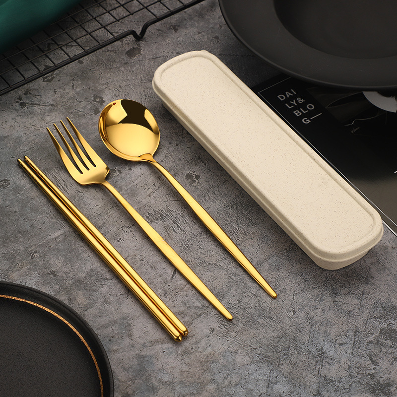 不锈钢餐具套装 葡萄牙便携餐具 学生宿舍勺叉筷子三件套logo定制