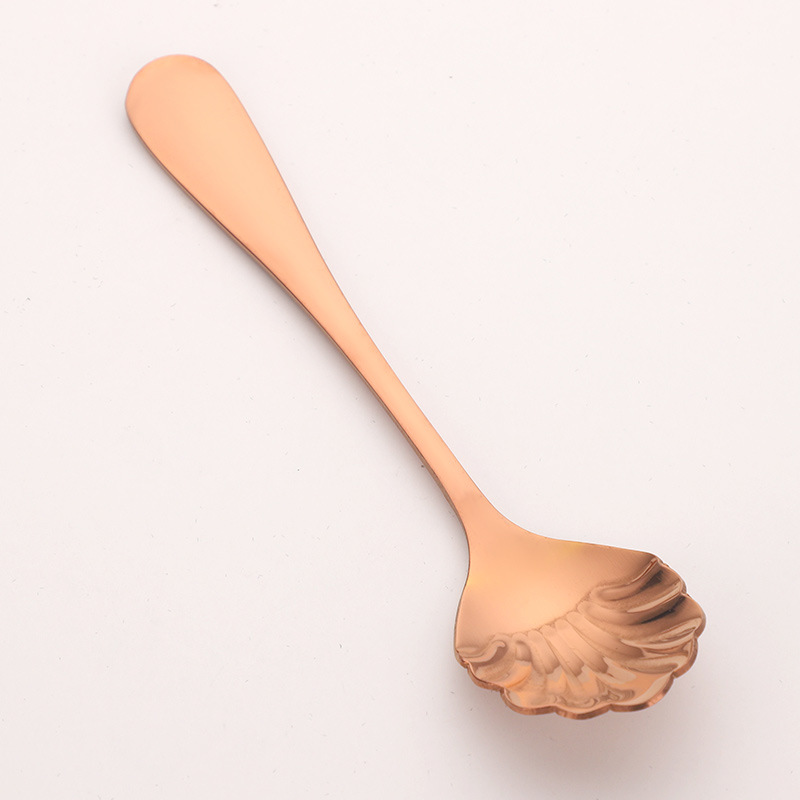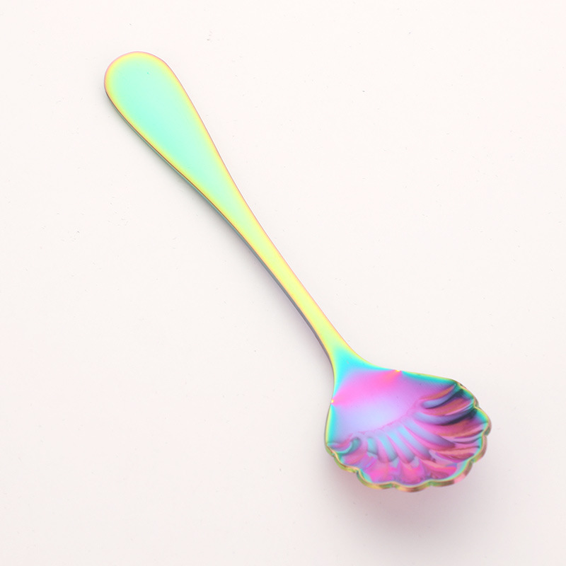 轻奢风镀钛不锈钢贝壳勺子家用餐厅雪糕咖啡蛋糕勺子可爱创意餐具