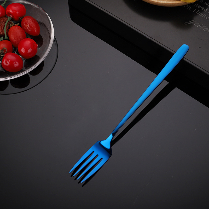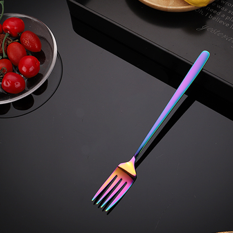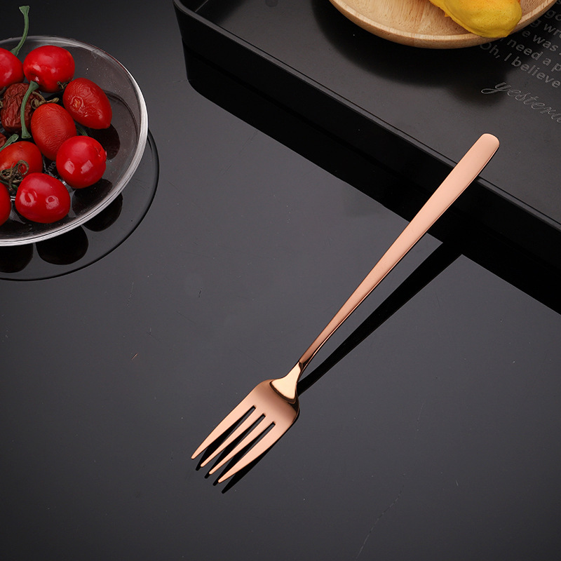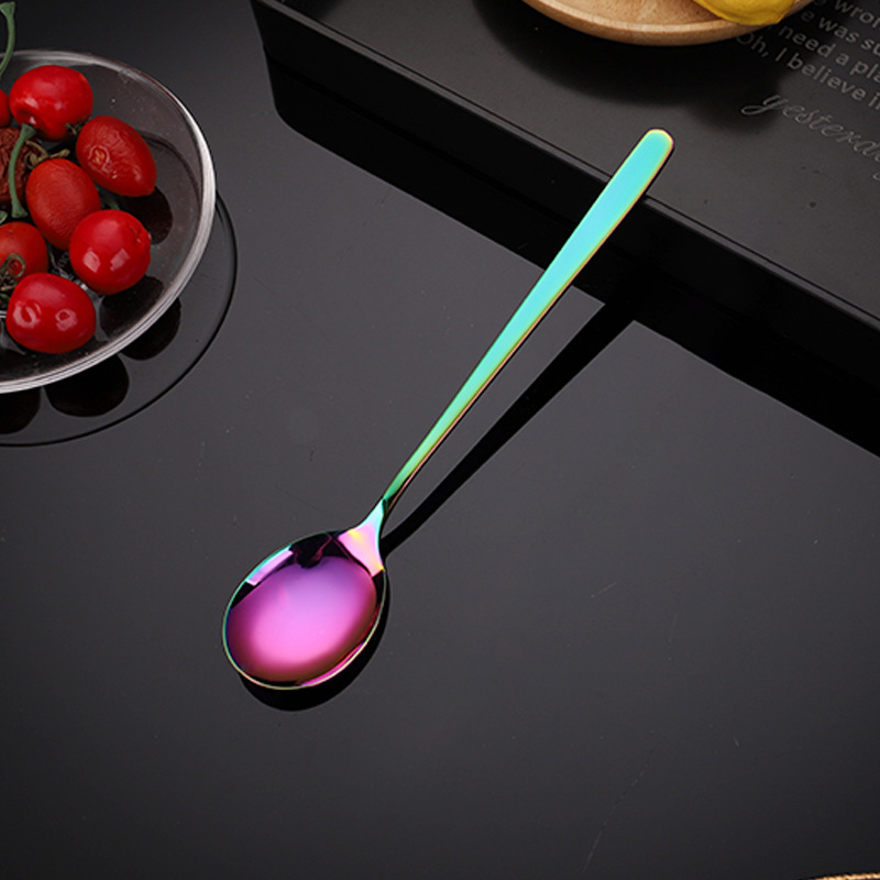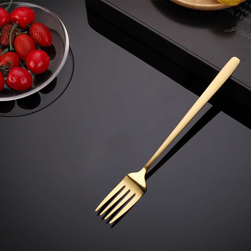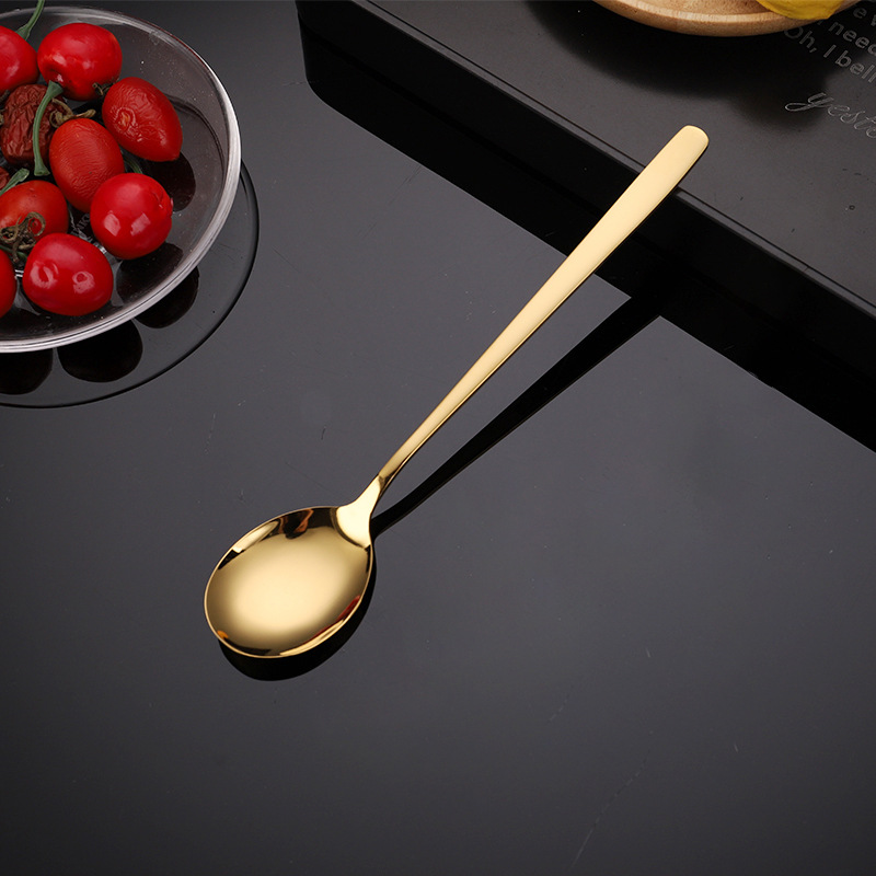 304不锈钢勺子叉子 镀金韩式叉勺搅拌长柄创意咖啡勺 可定制logo