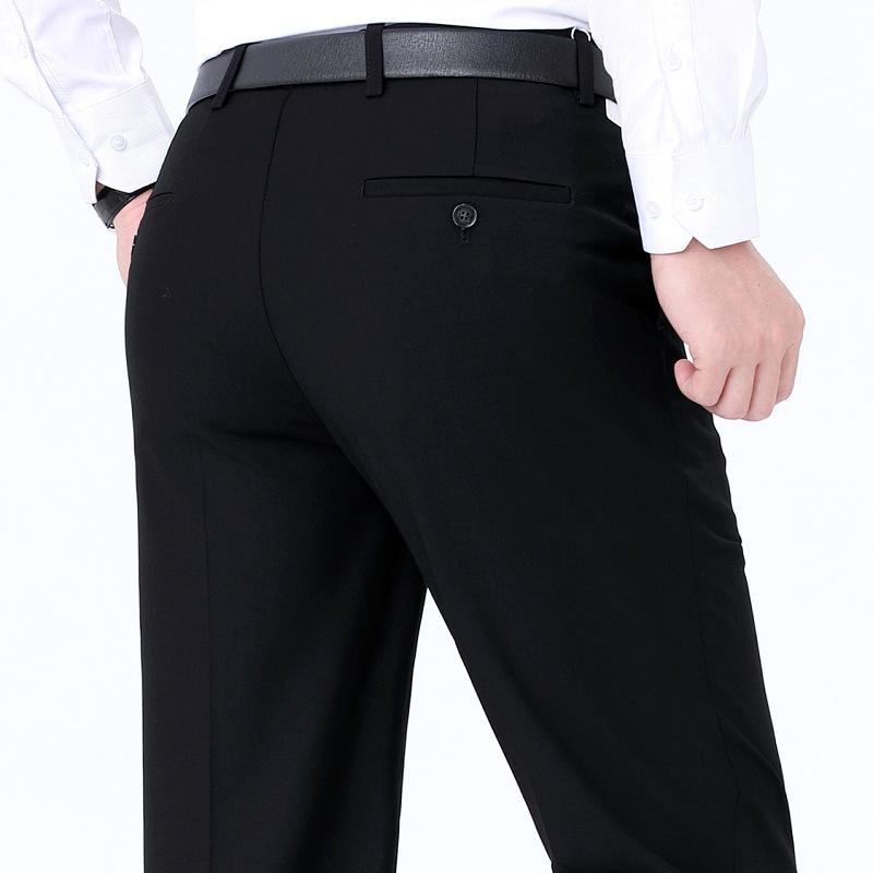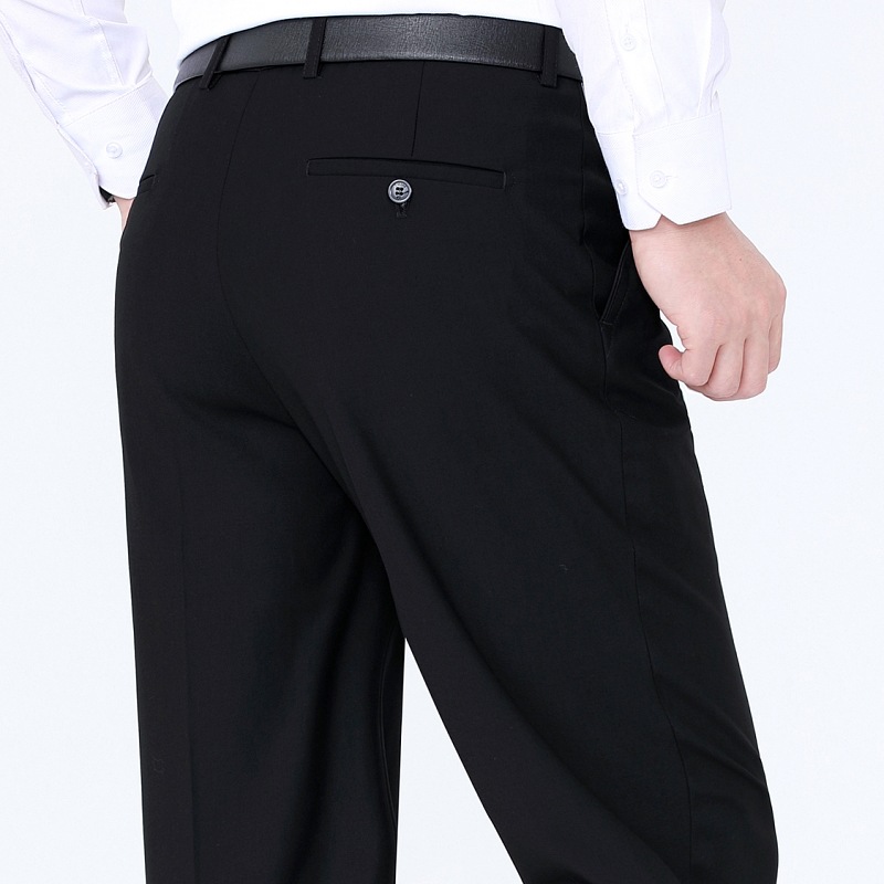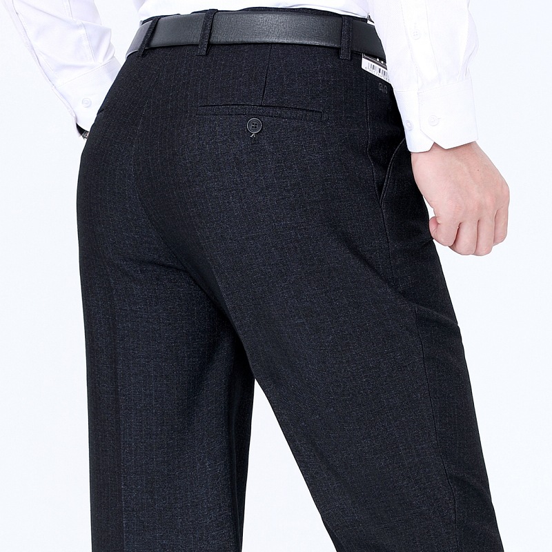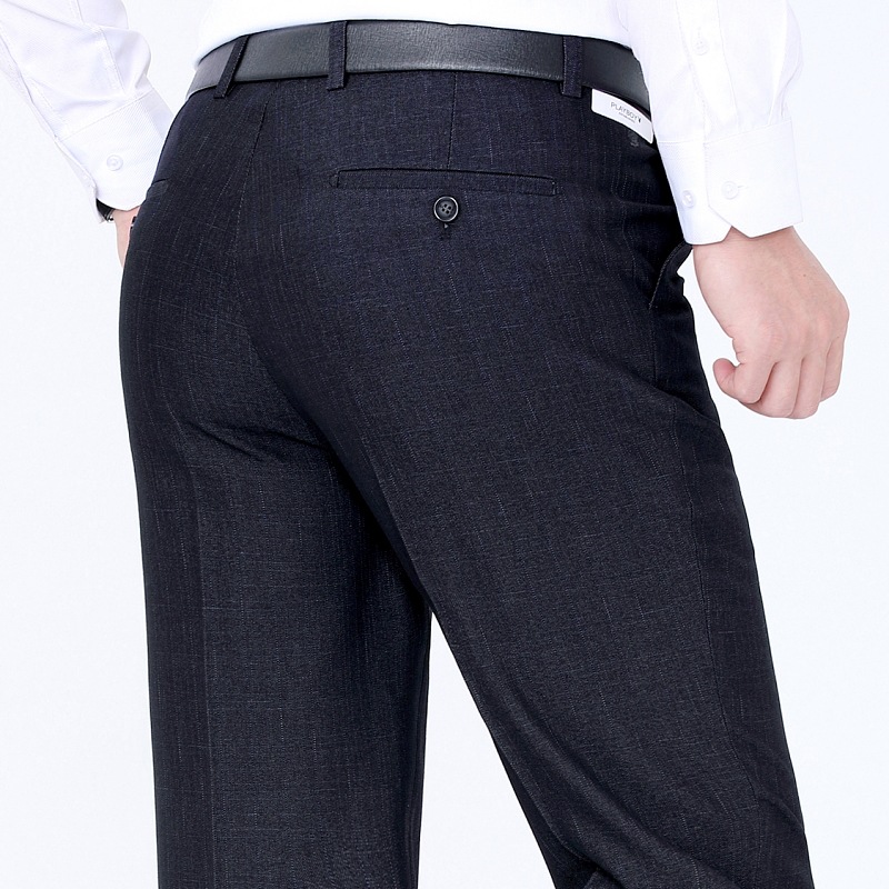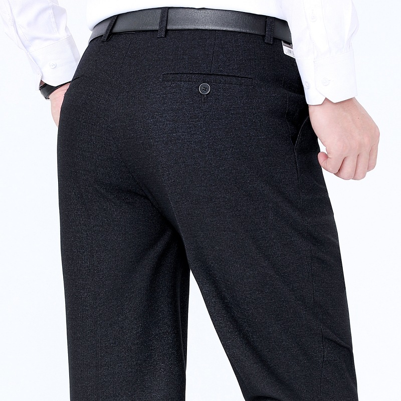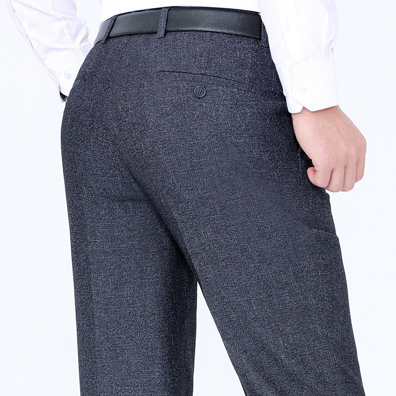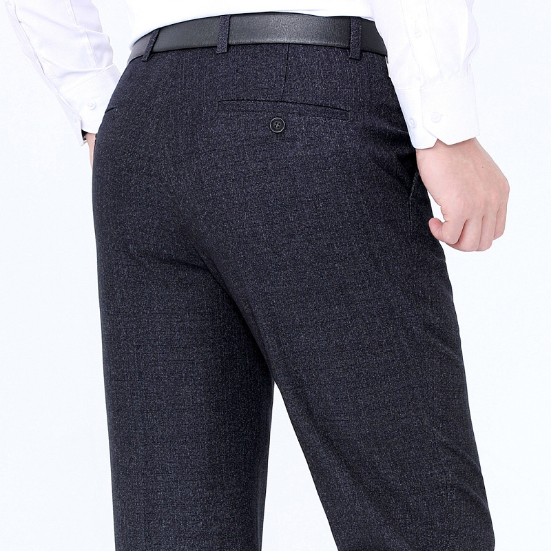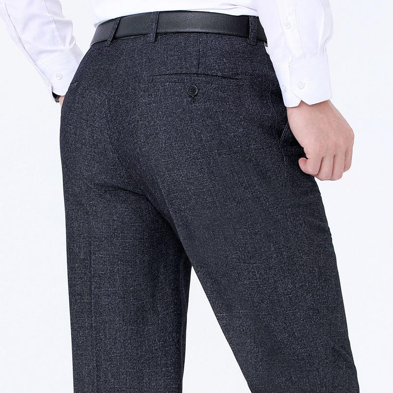 秋冬厚款男式休闲裤直筒宽松中年商务男裤男士羊毛西裤免烫长裤子