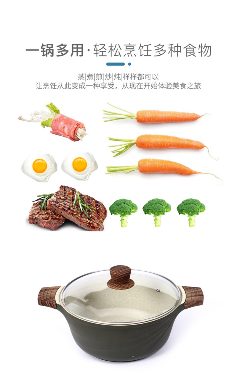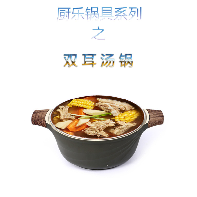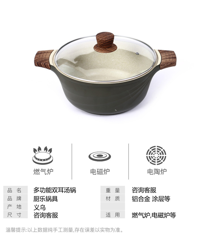 麦饭石不粘汤锅双耳防烫炖锅平底加厚通用电磁炉燃气炉锅