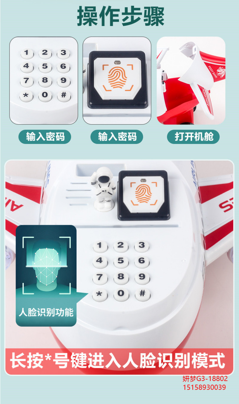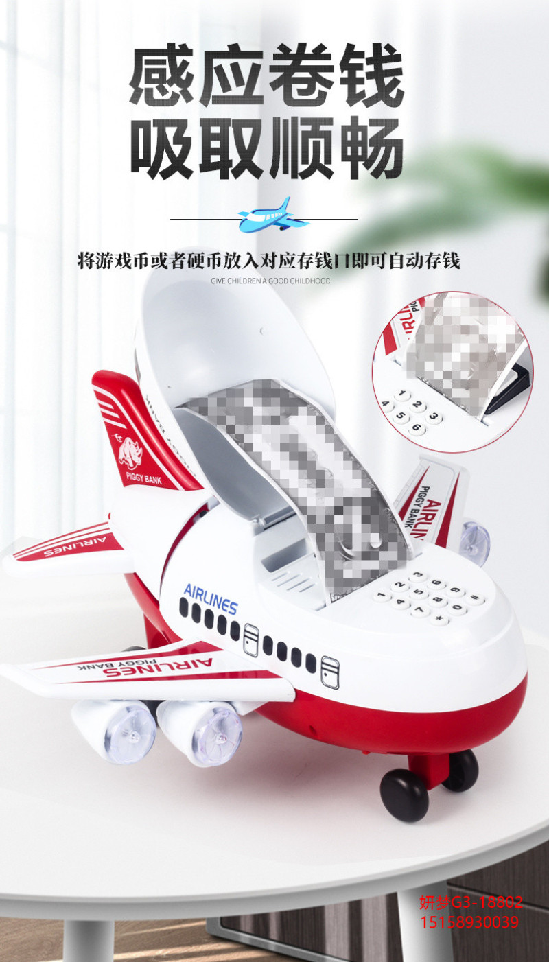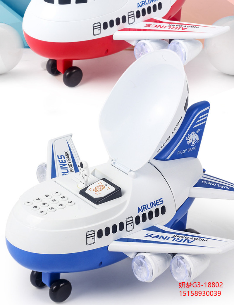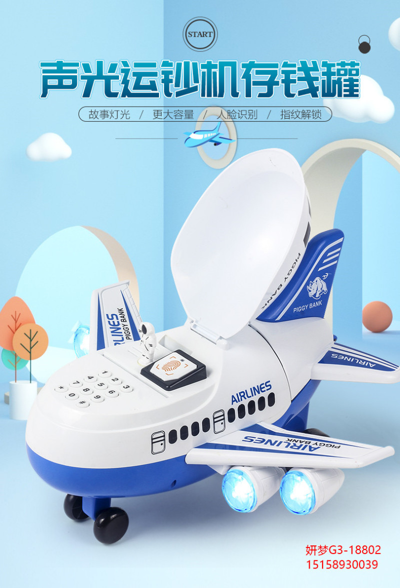 飞机存钱罐人脸识别指纹儿童运钞密码箱大容量储钱盒储蓄罐存款机