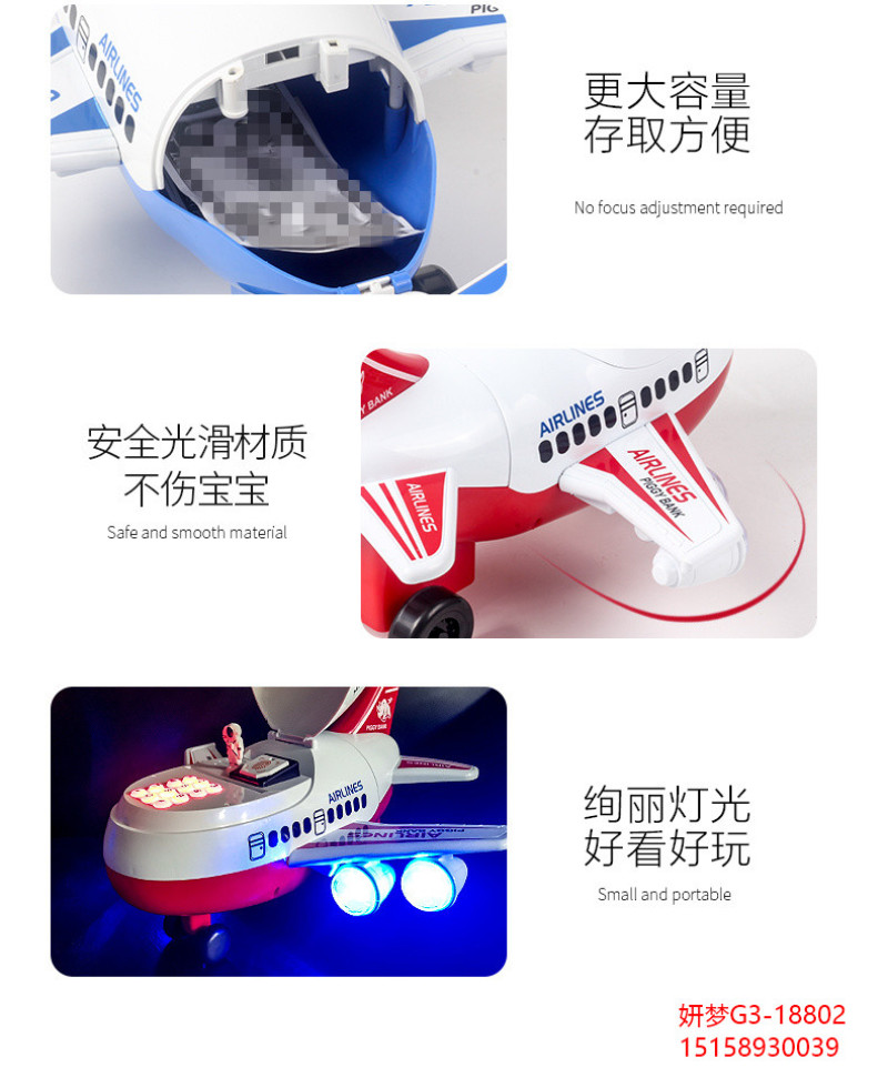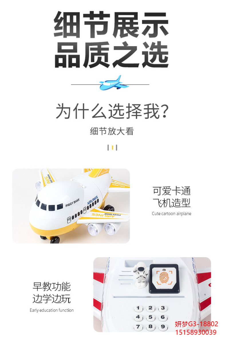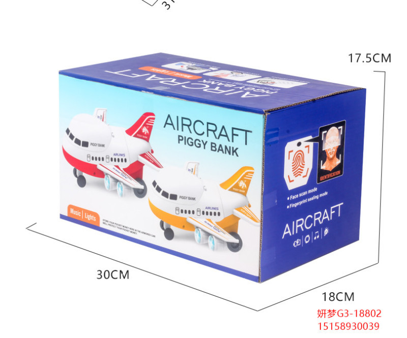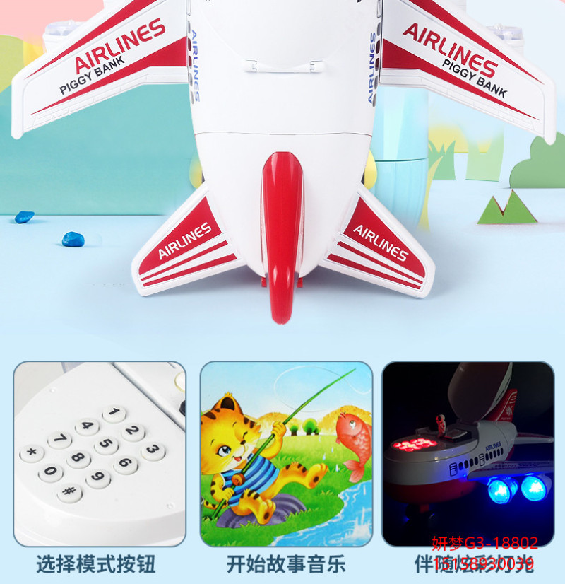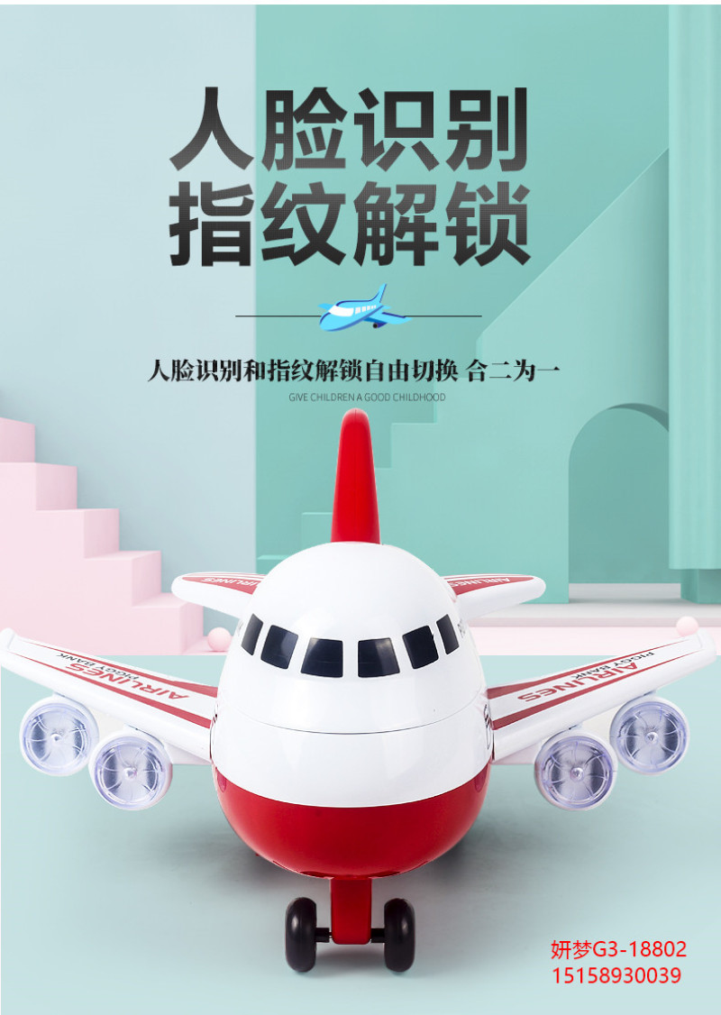 飞机存钱罐人脸识别指纹儿童运钞密码箱大容量储钱盒储蓄罐存款机