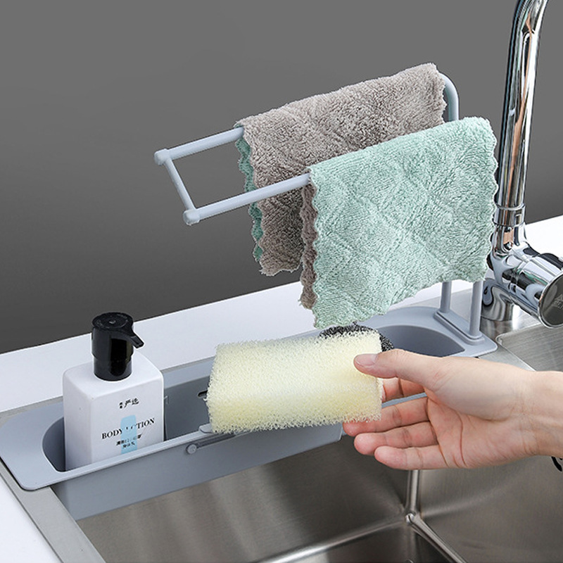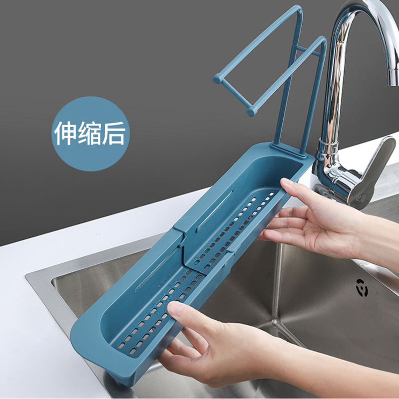 厨房创意免打孔抽拉水槽沥水架家用伸缩海绵抹布多功能收纳置物架