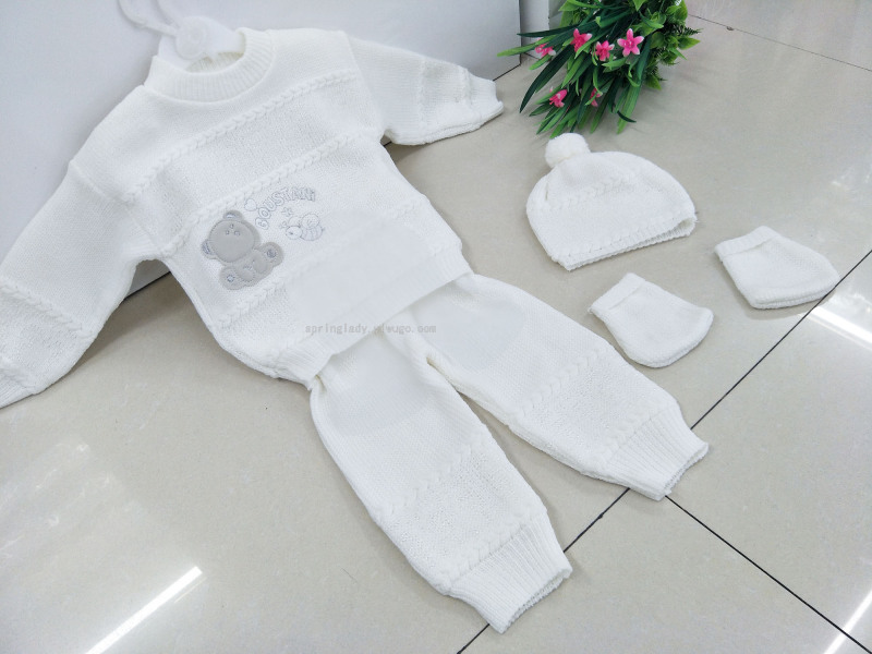 Spring Lady婴儿衣服 毛衣套装 宝宝针织套装 婴儿4件套童装