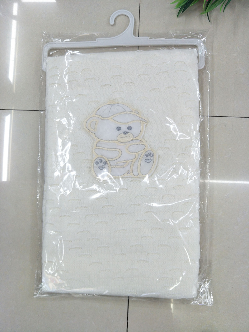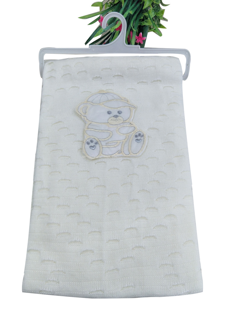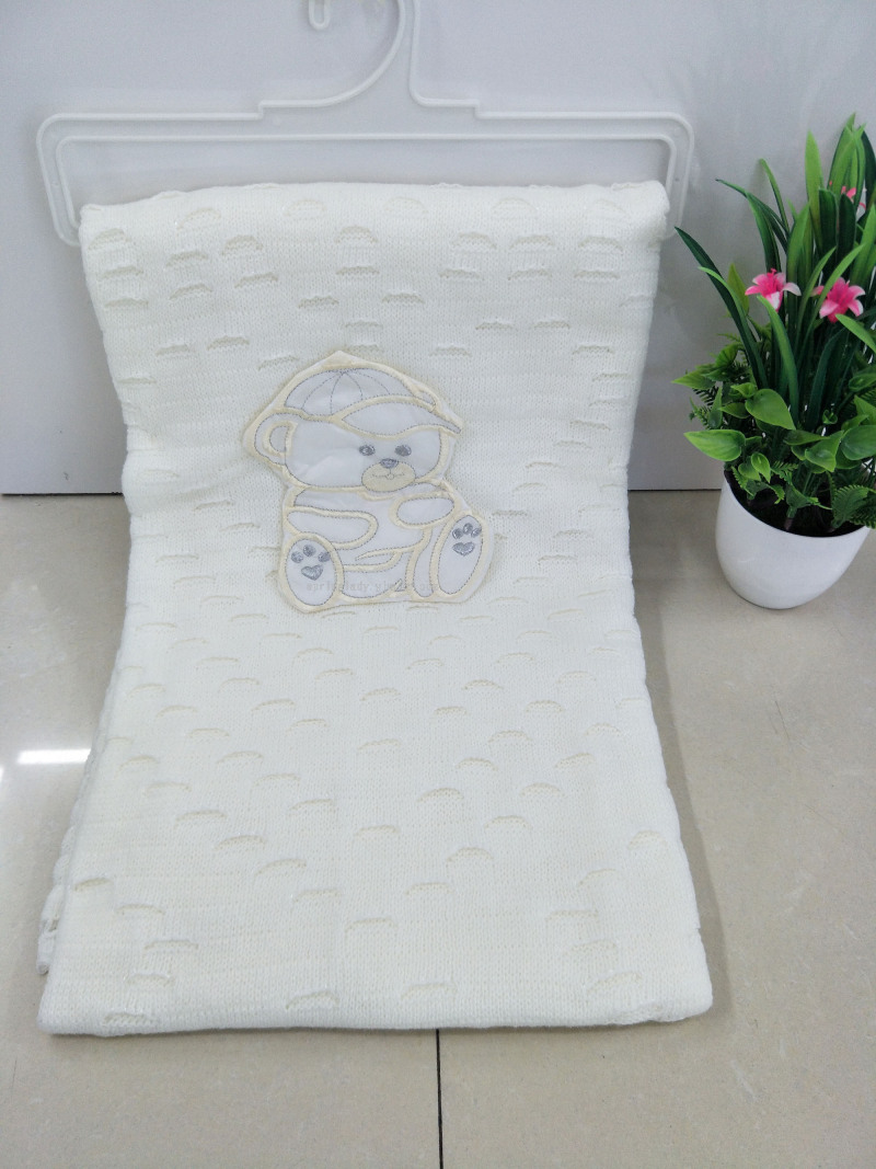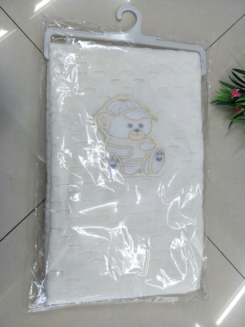 Spring Lady 热销针织童毯 婴儿抱毯 小熊图案针织婴儿抱被抱毯
