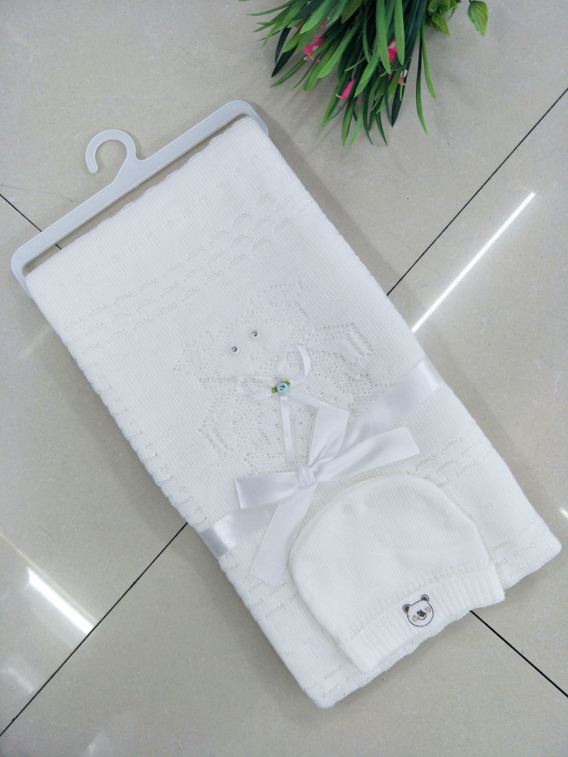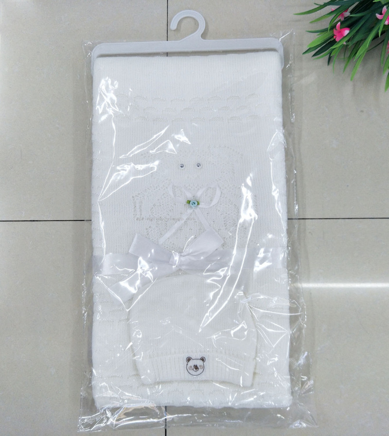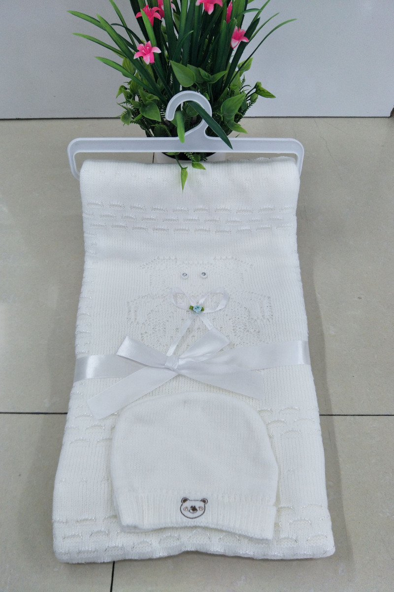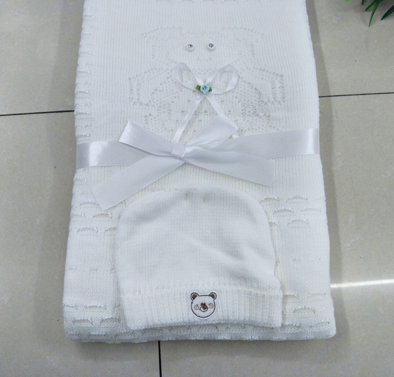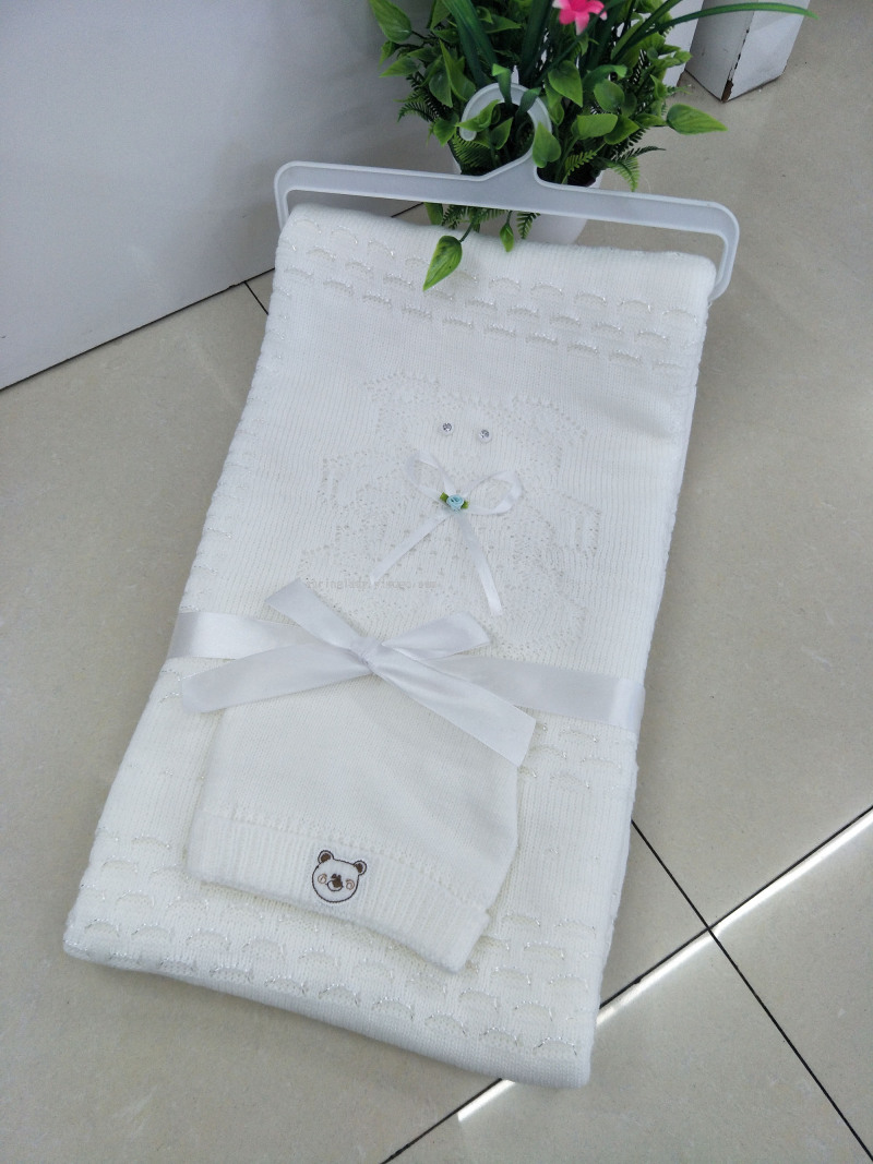 Spring Lady 热销针织童毯 婴儿抱毯 针织毯加帽子 婴儿抱毯套装
