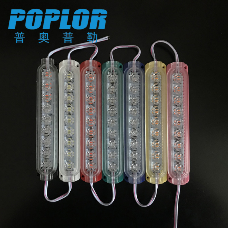 LED模组单排9灯汽车摩托车货车警示灯单边灯防水白光红绿蓝黄粉紫