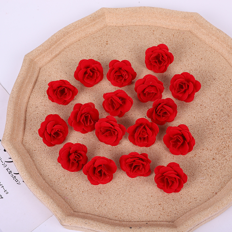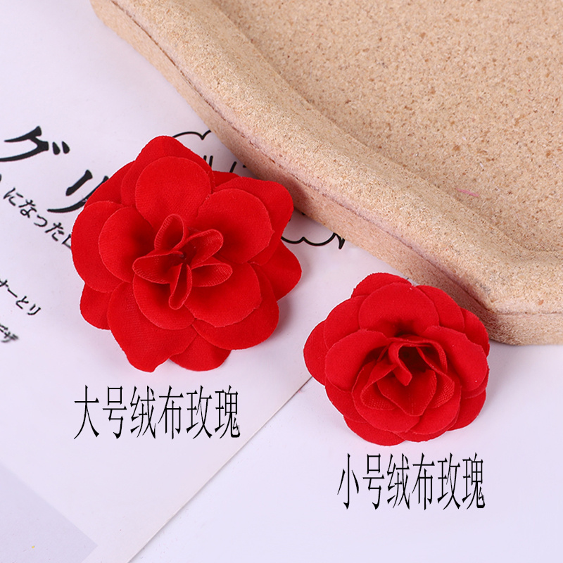 厂家直销仿真花头新款DIY花环假花人造花绢花绒布玫瑰花手工花头