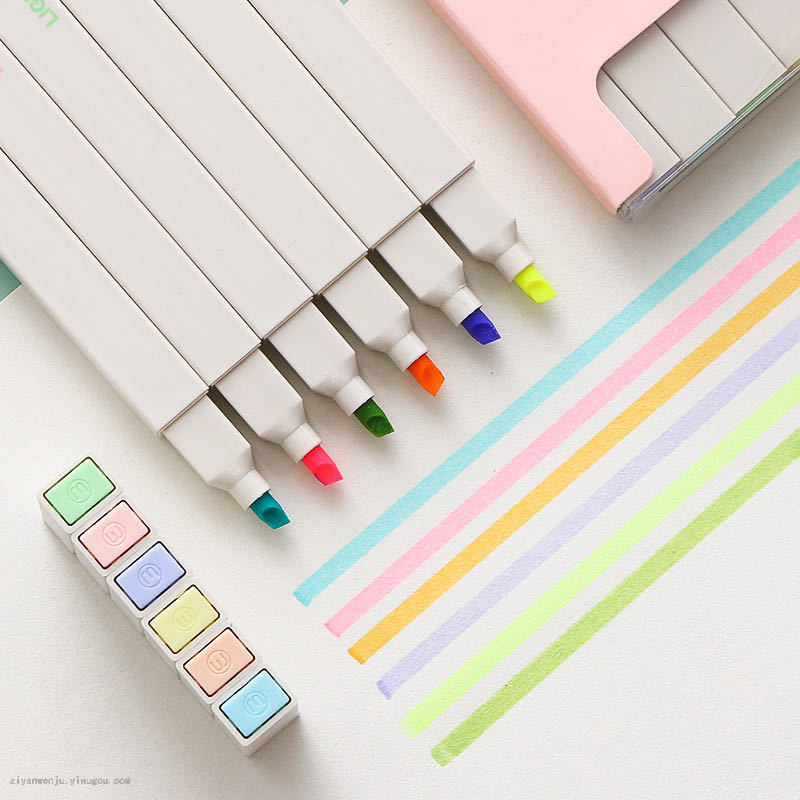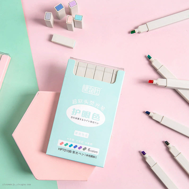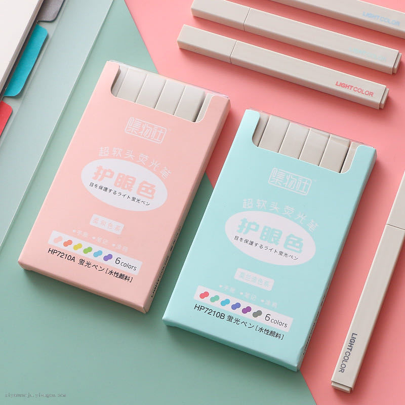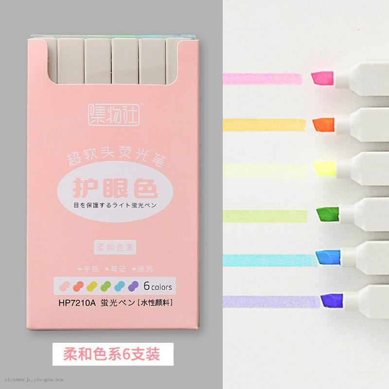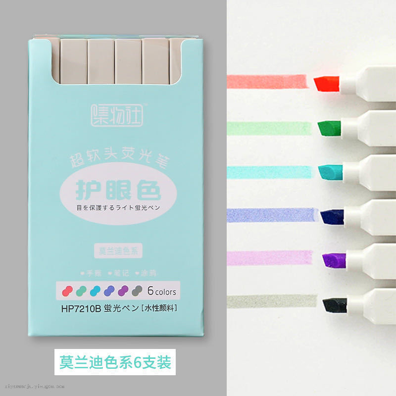 集物社护眼色莫兰迪荧光笔套装彩色学生手帐标记速干软头荧光笔