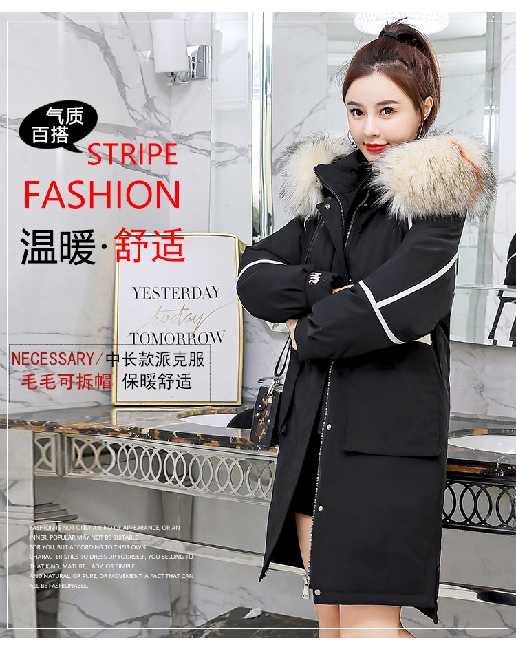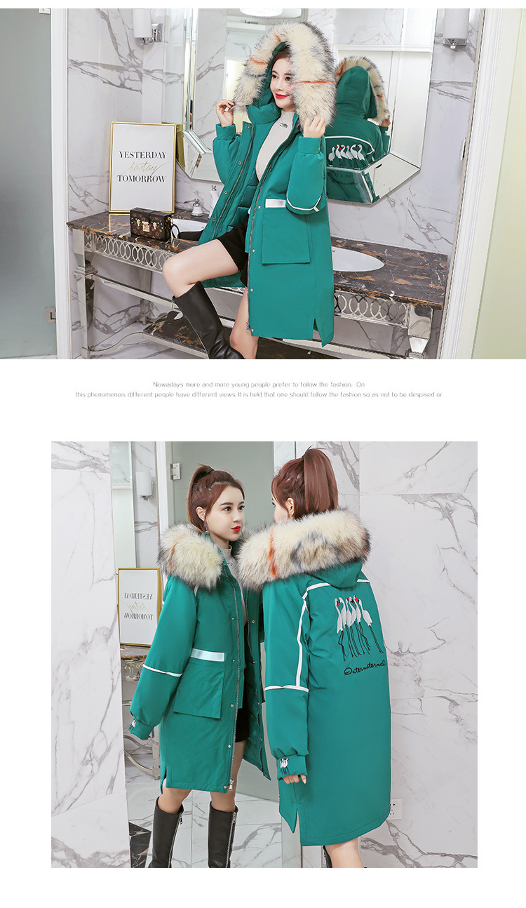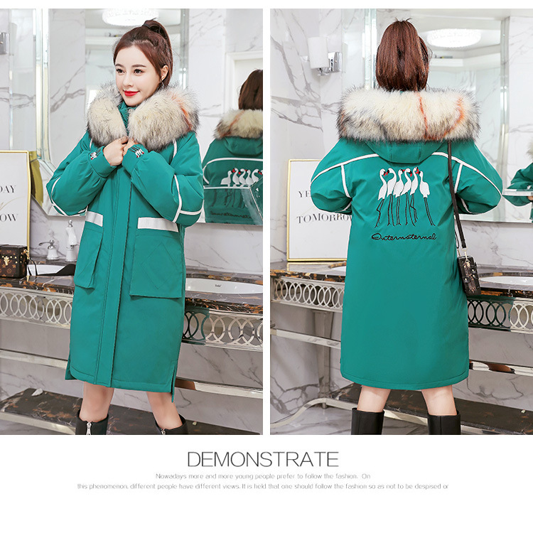 韩国中长款过膝羽绒服女大码爆款加厚宽松时尚派克服外套