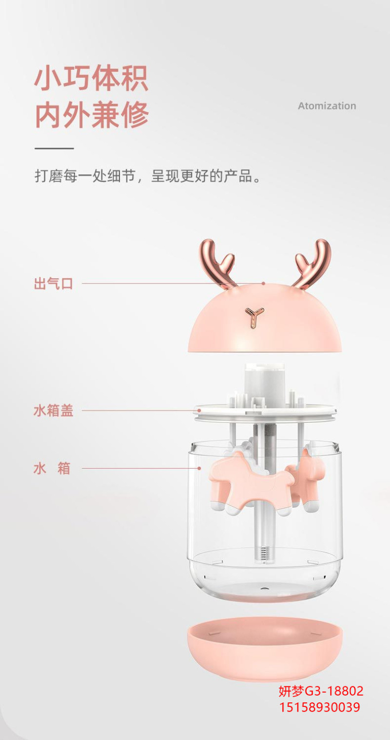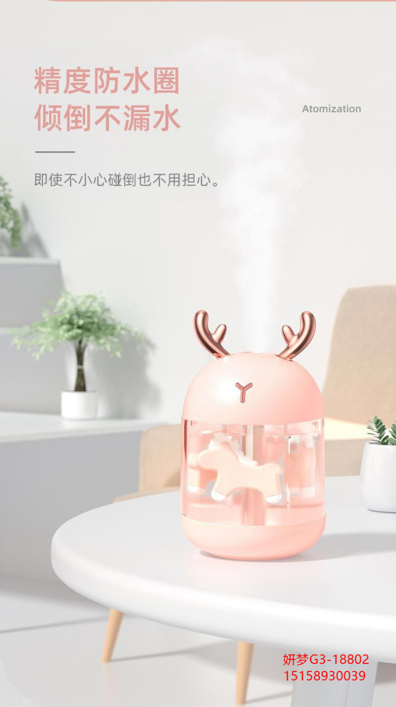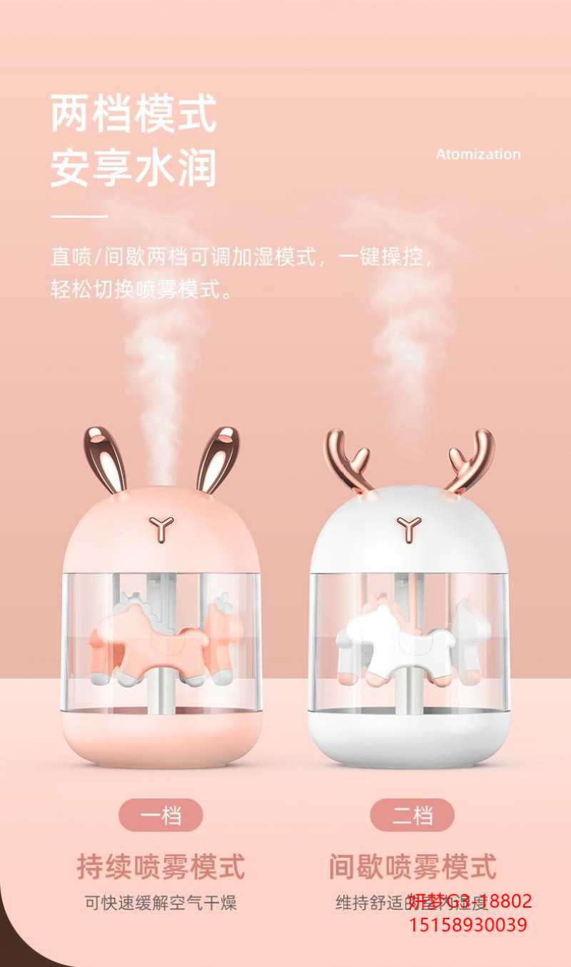 新款USB萌宠迷你夜灯加湿器大雾量家用卧室办公学生梦幻木马创意