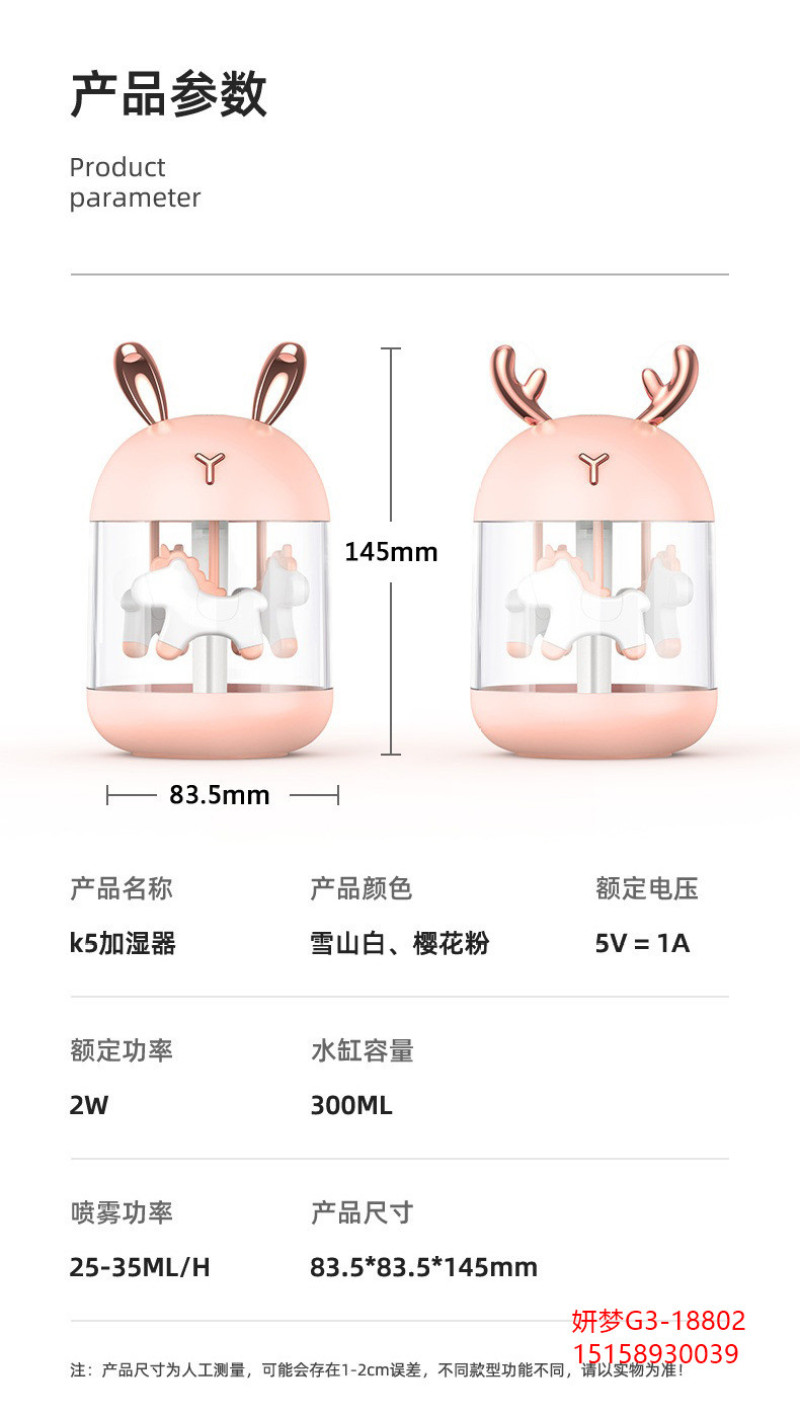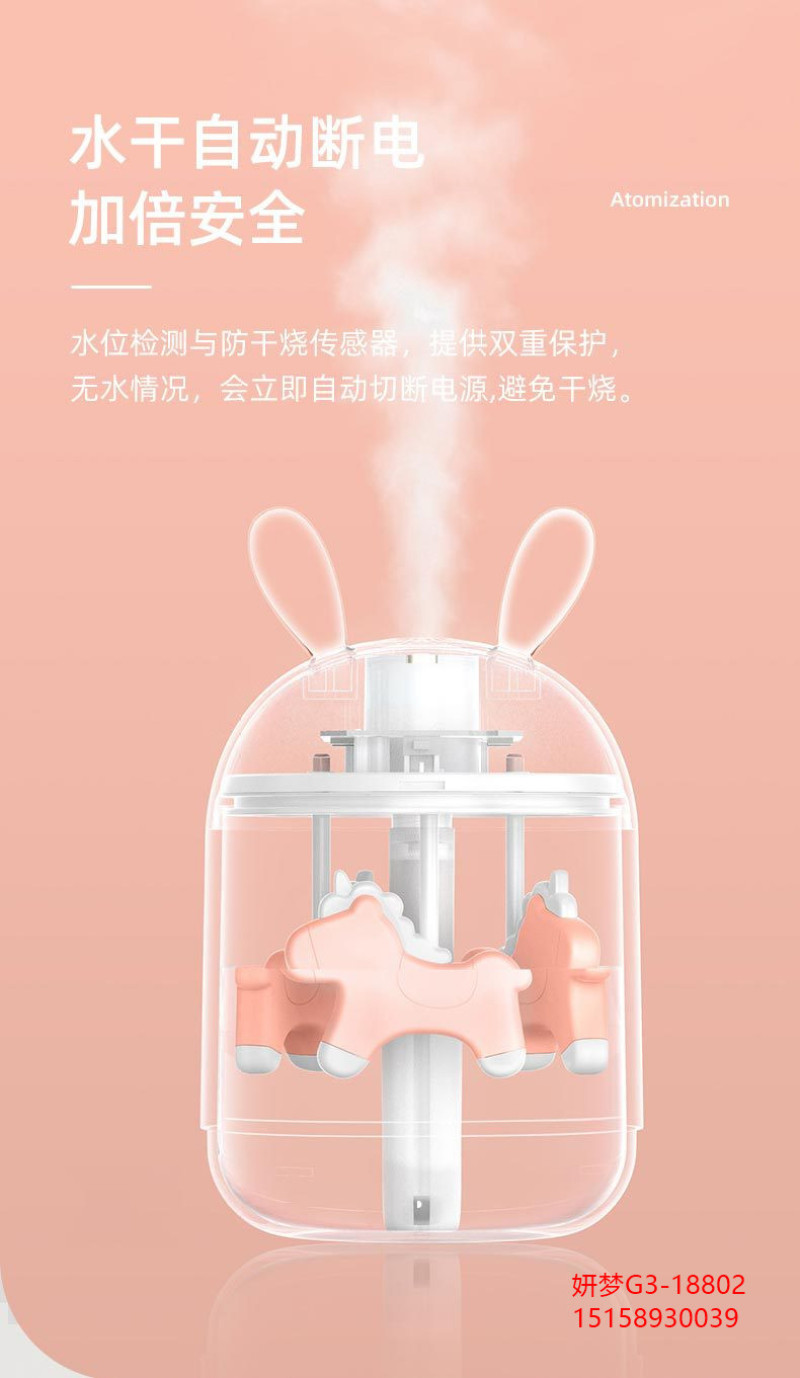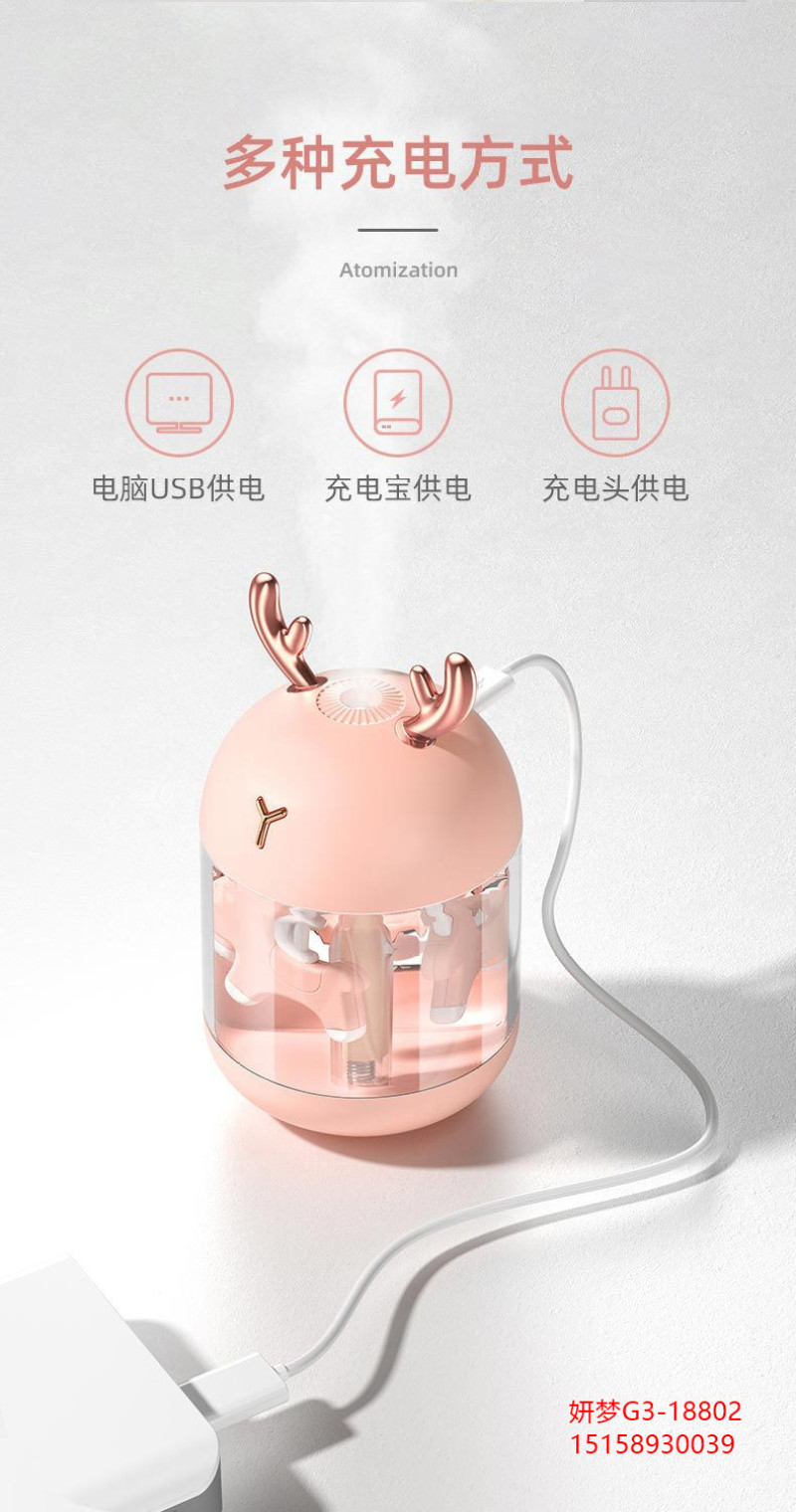新款USB萌宠迷你夜灯加湿器大雾量家用卧室办公学生梦幻木马创意