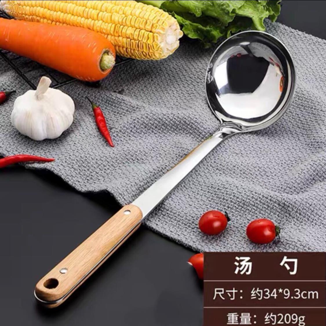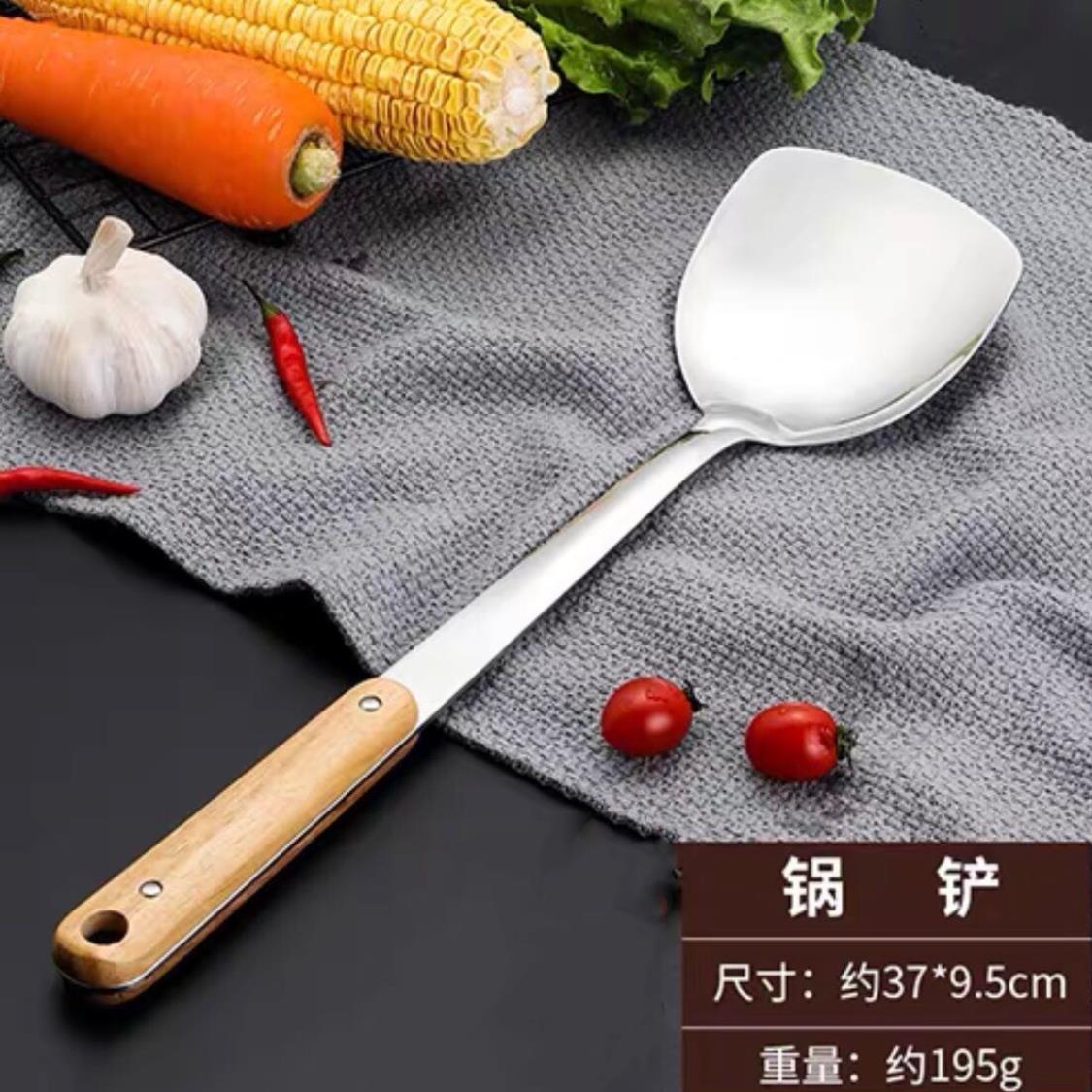 厨具套装家用炒勺木柄不锈钢锅铲汤勺漏勺炒菜铲子防烫厨房不粘锅