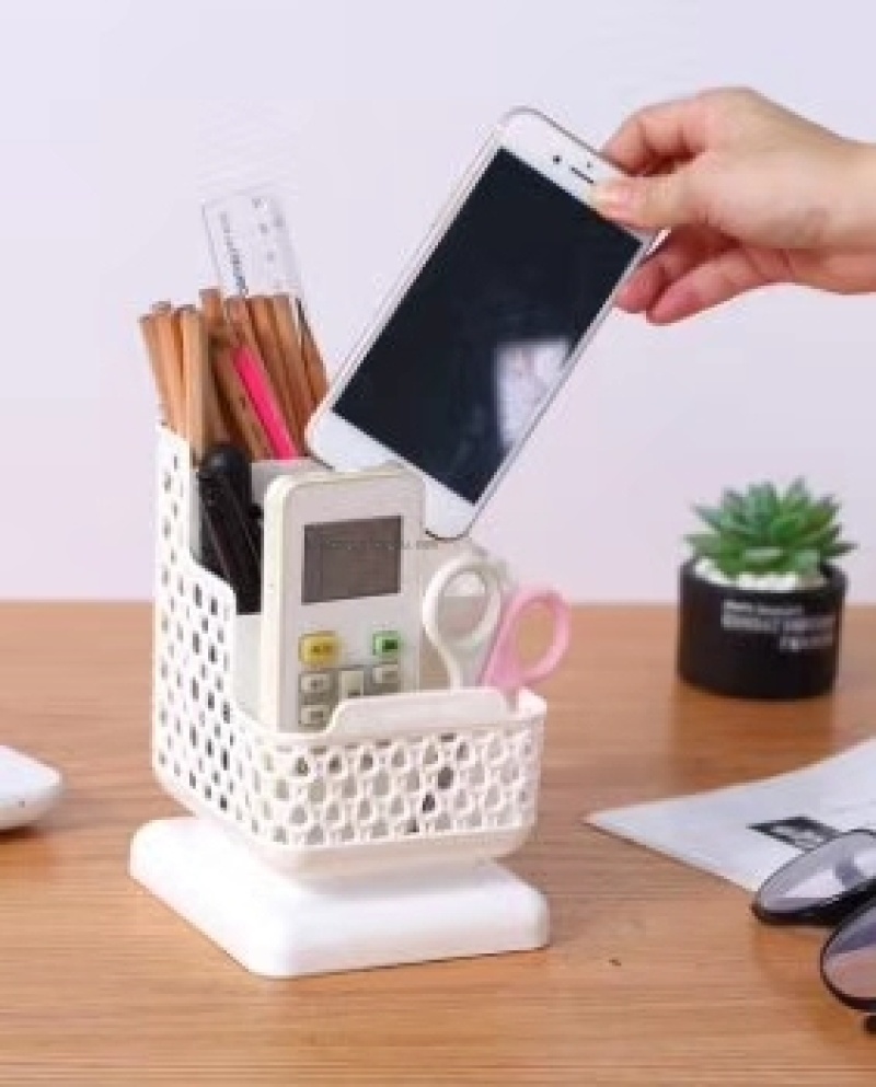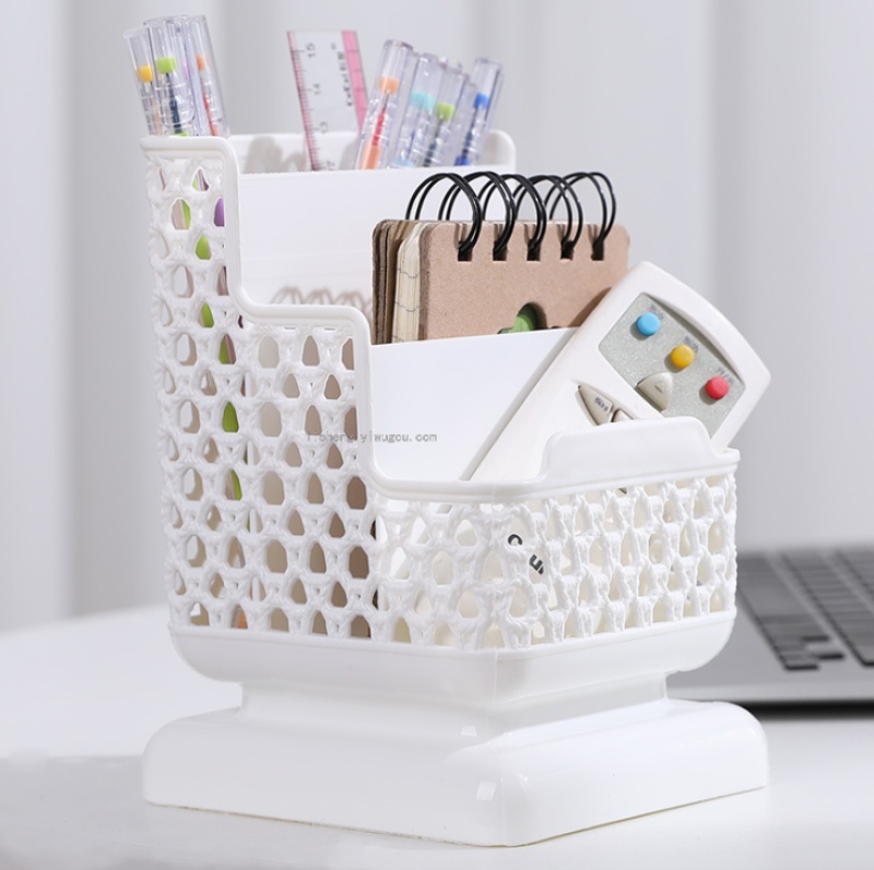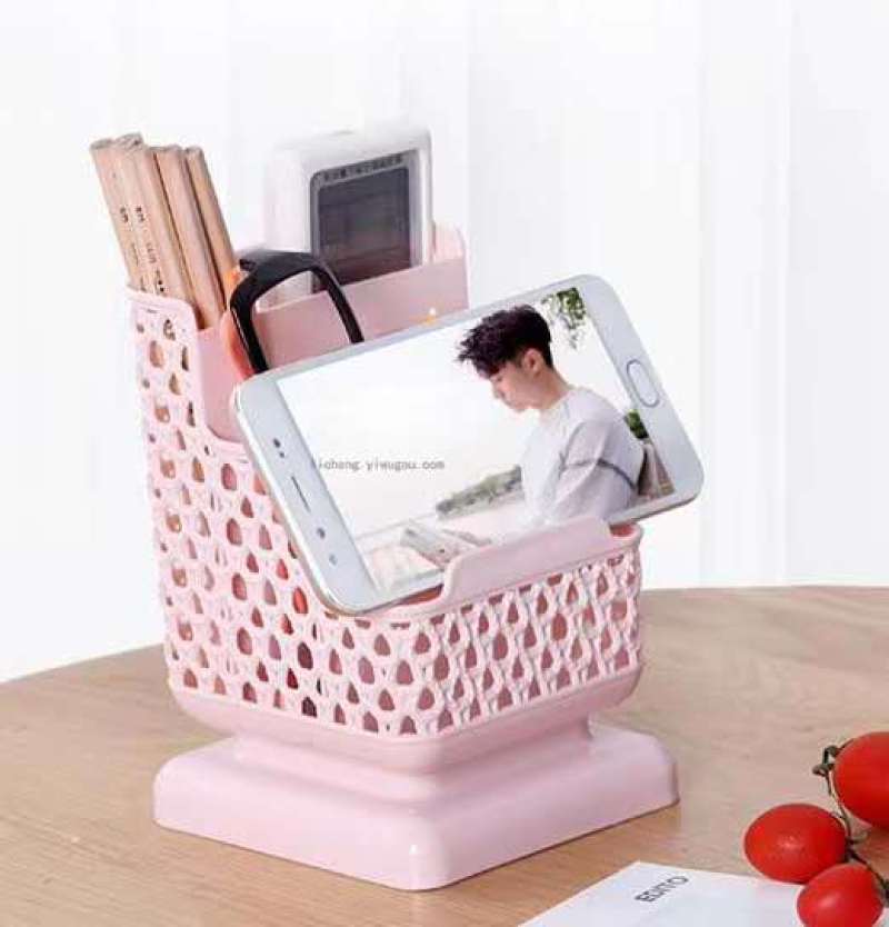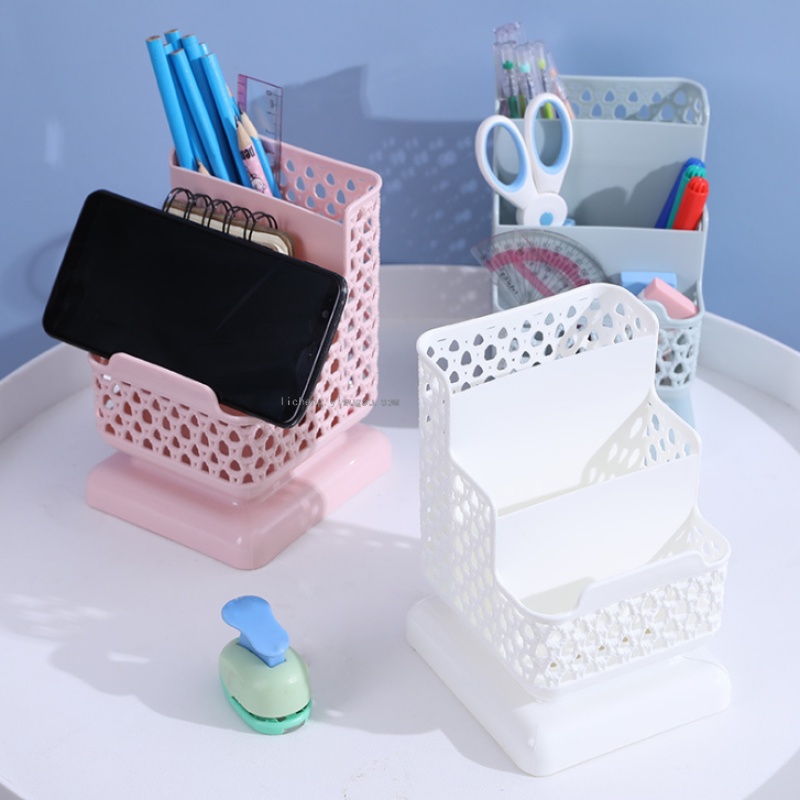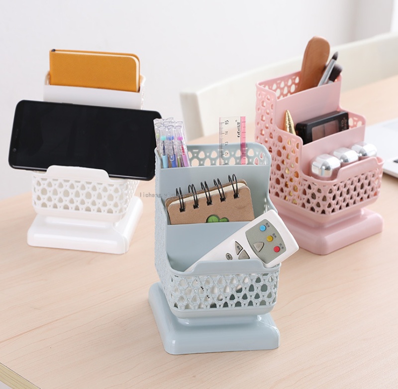 桌面镂空化妆品收纳盒手机支架创意办公塑料多功能收纳笔筒