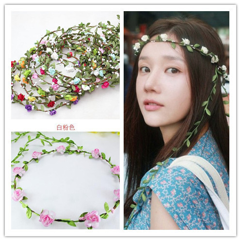 跨境热卖头饰花环 沙滩旅游发饰仿真玫瑰花新娘森女头饰头箍批发