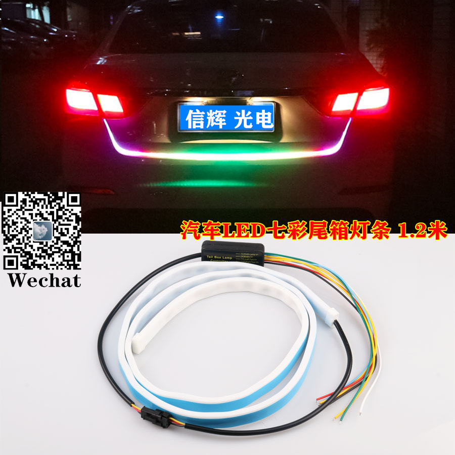 汽车LED尾箱灯,多模式装饰灯彩灯条。直行 七彩跑马,刹车红光爆闪,转向黄光,倒车冰蓝光。汽车尾部装饰灯条。