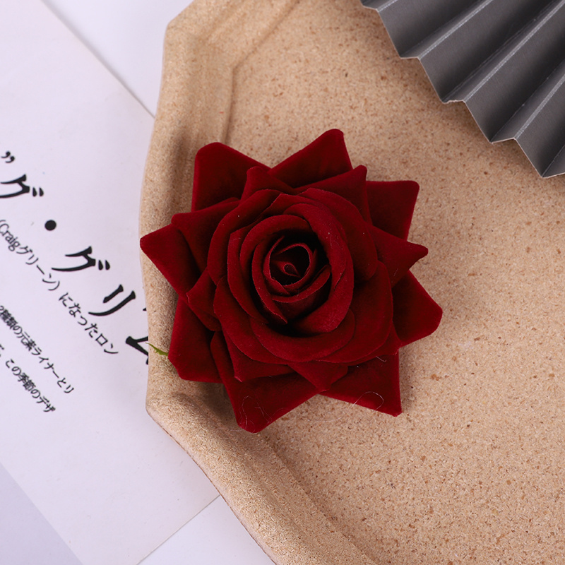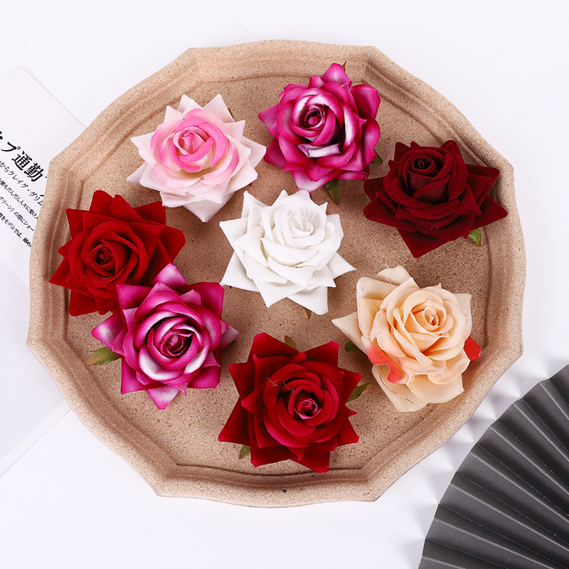 厂家直销仿真花头新款DIY花环辅料假花人造花绢花8公分绒布玫瑰