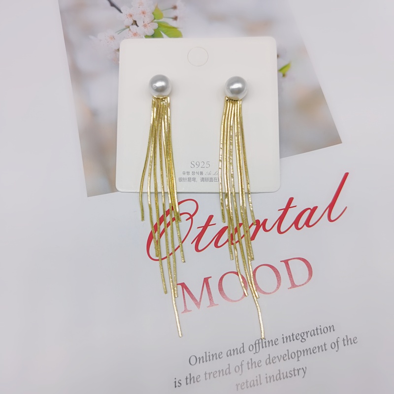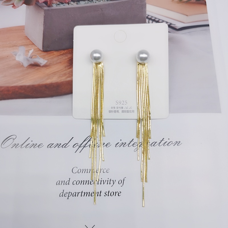 韩国东大门金色长款流苏耳环女潮 ins网红超仙气质显脸瘦耳坠耳钉