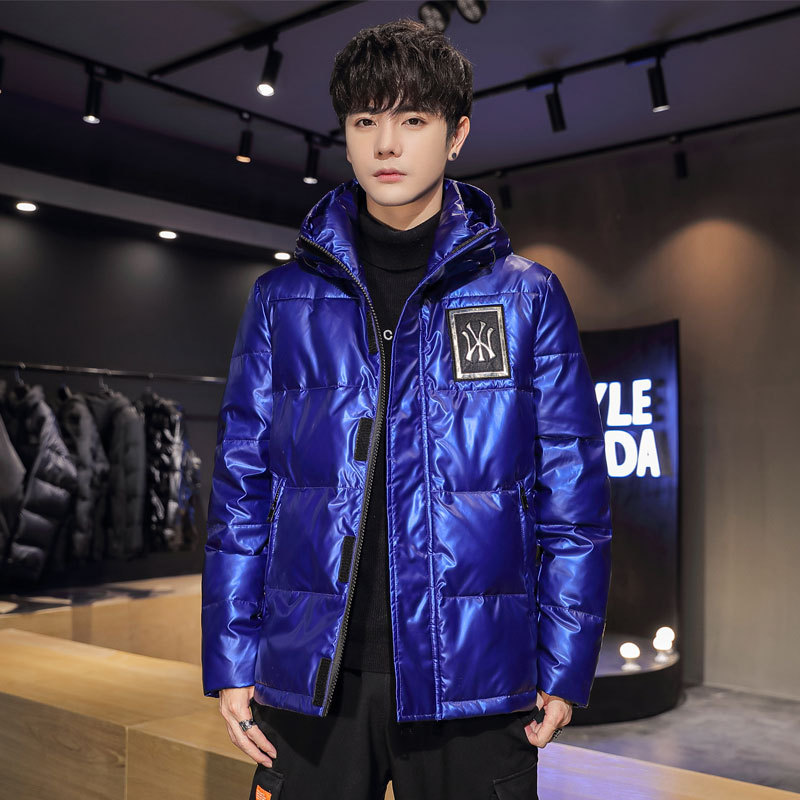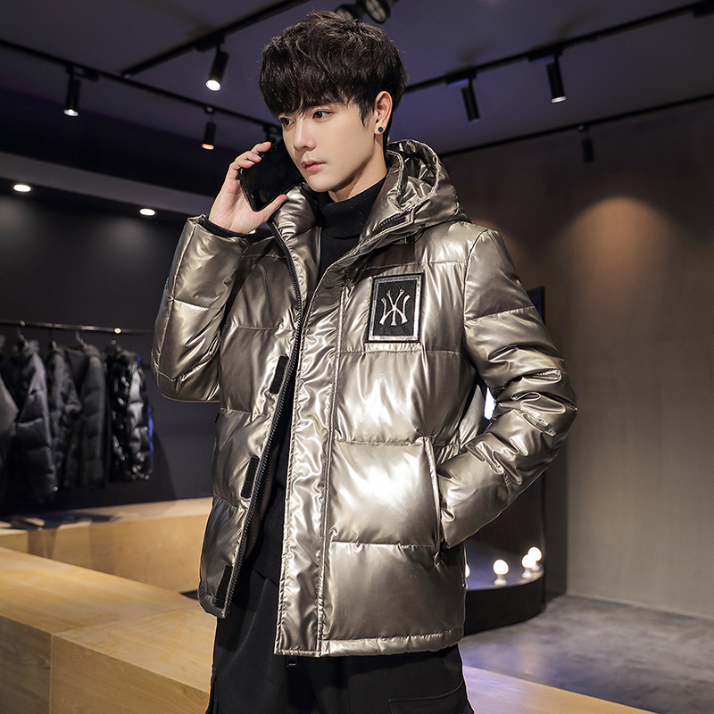 新款亮面羽绒服男士短款青年韩版修身休闲加厚保暖连帽情侣外套潮