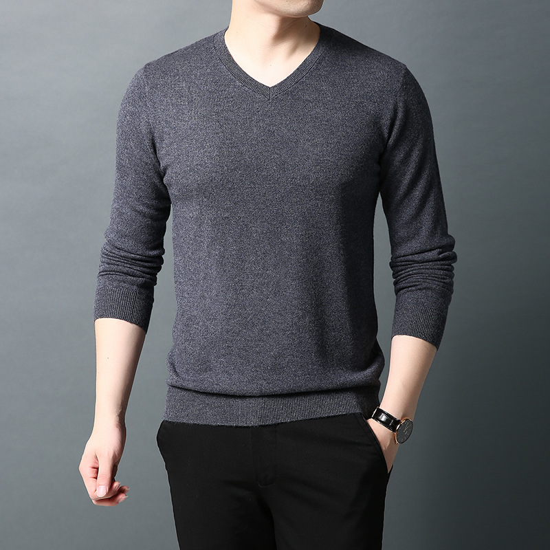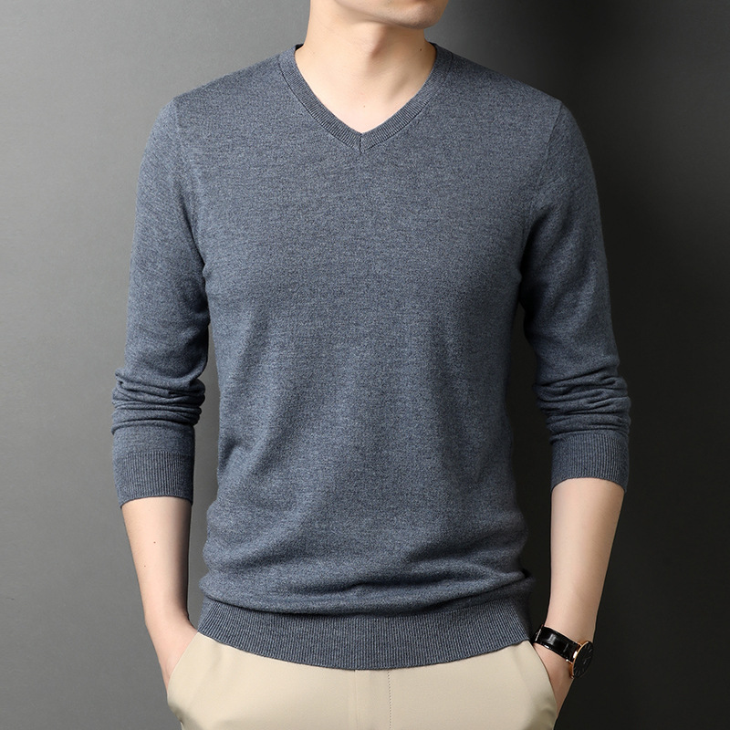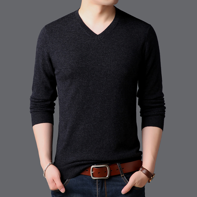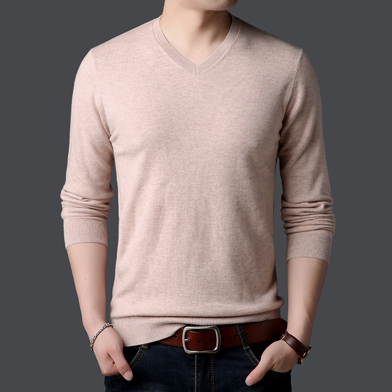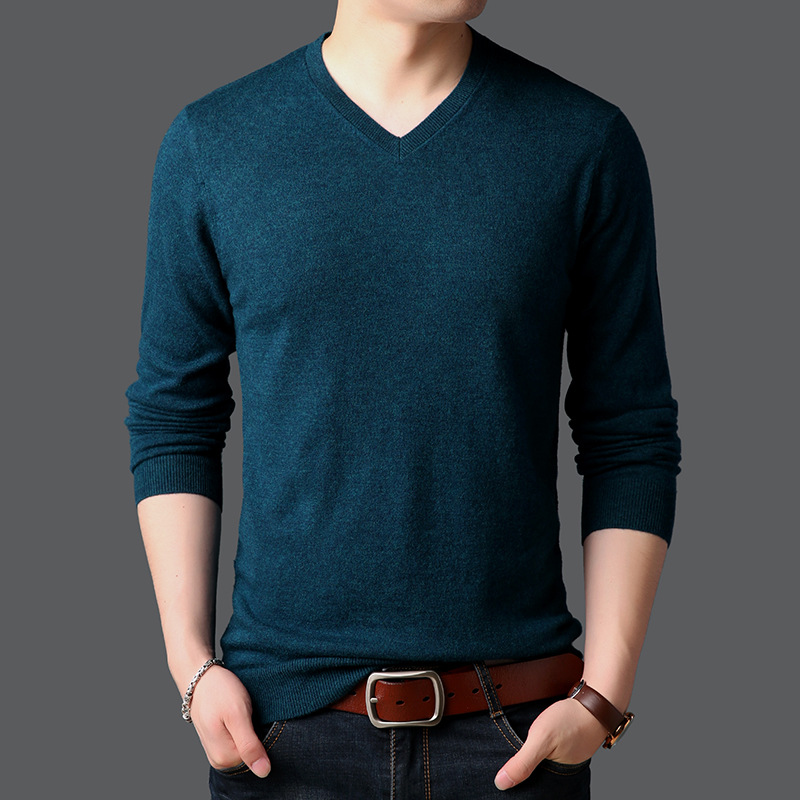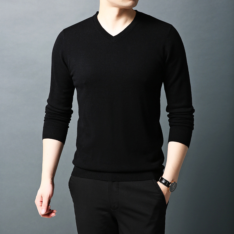 男士薄款修身羊毛衫秋冬鸡心V领纯色柔软针织打底毛衣男