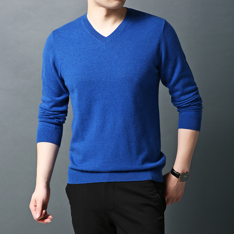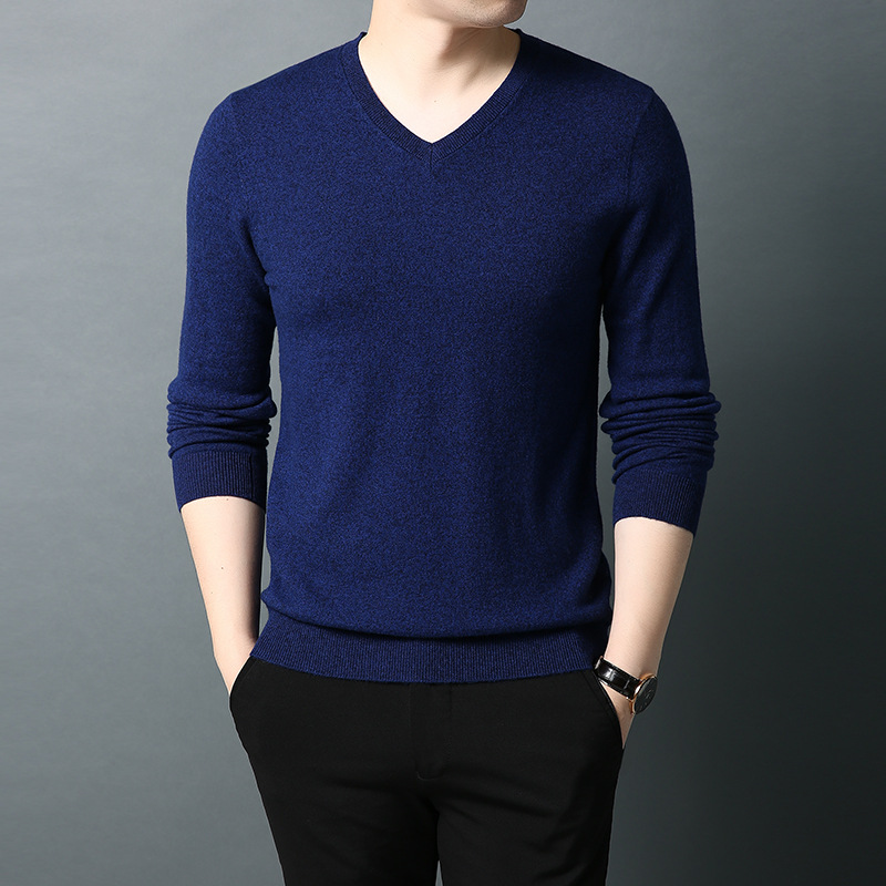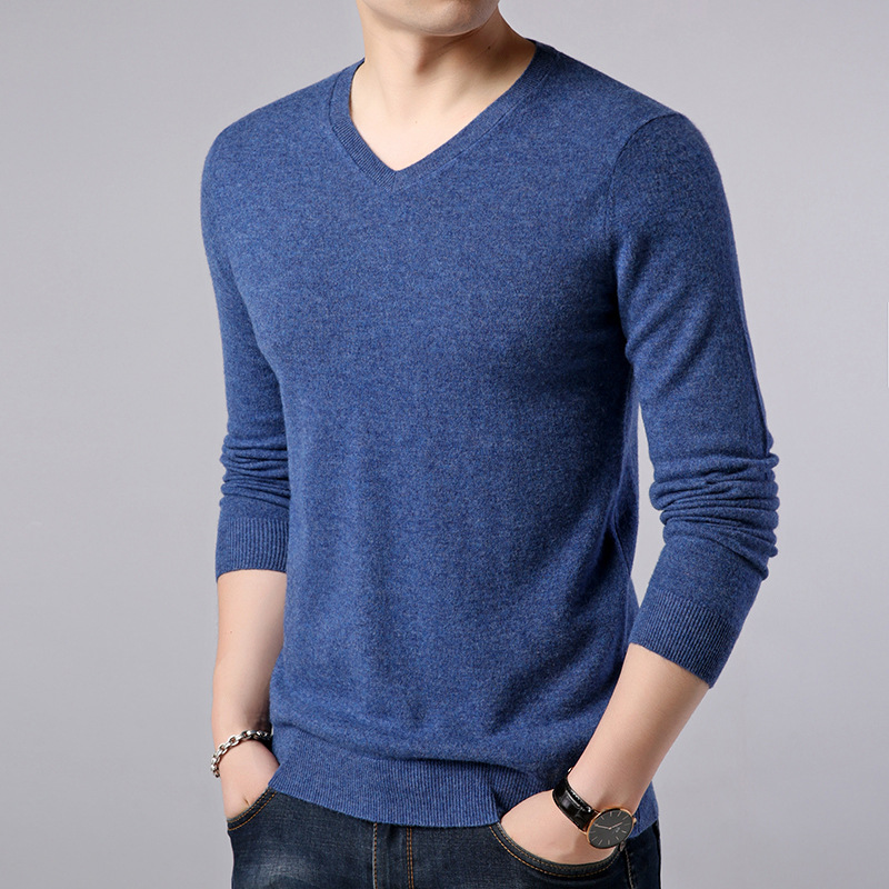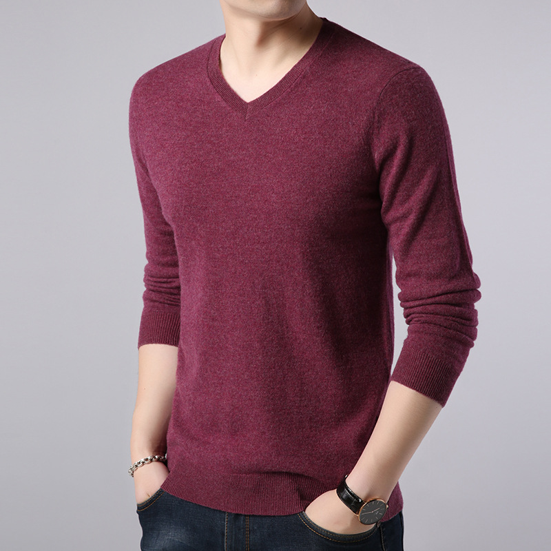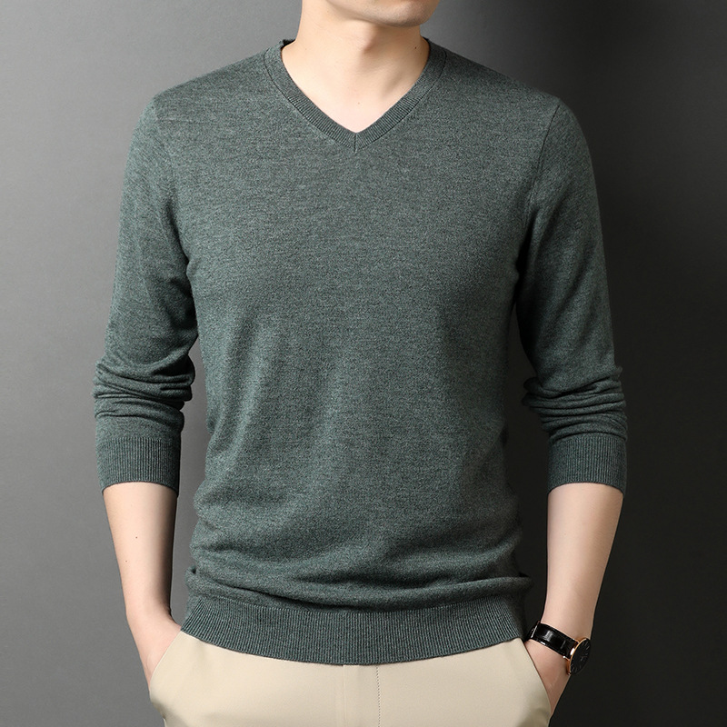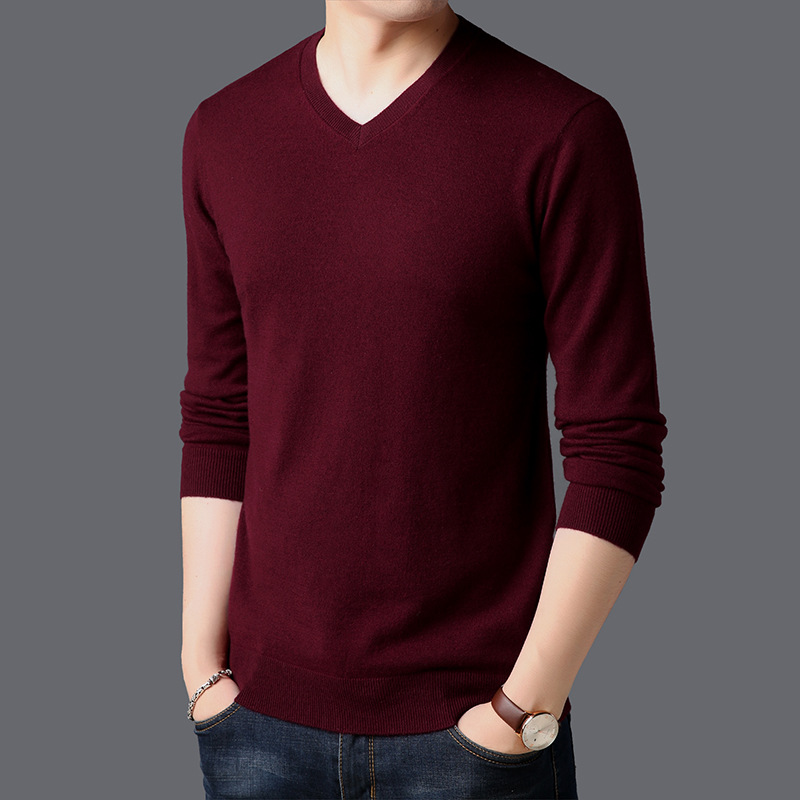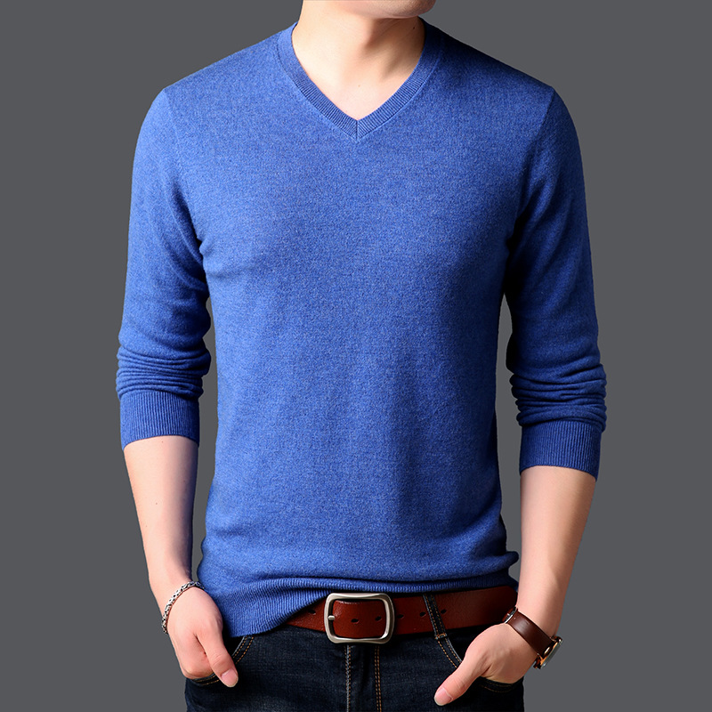 男士薄款修身羊毛衫秋冬鸡心V领纯色柔软针织打底毛衣男