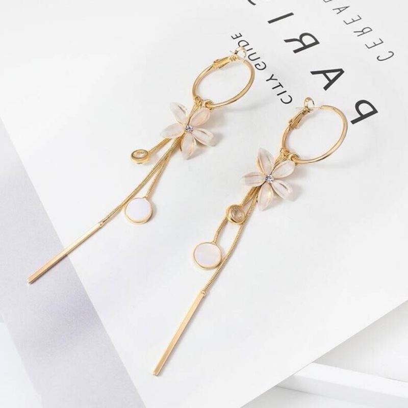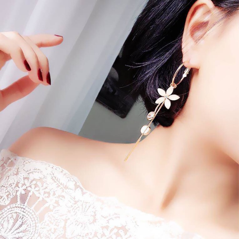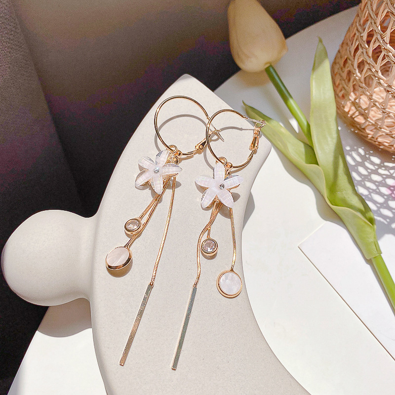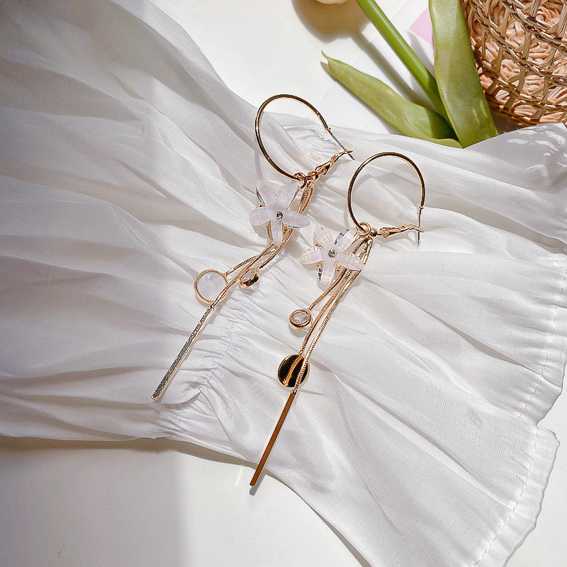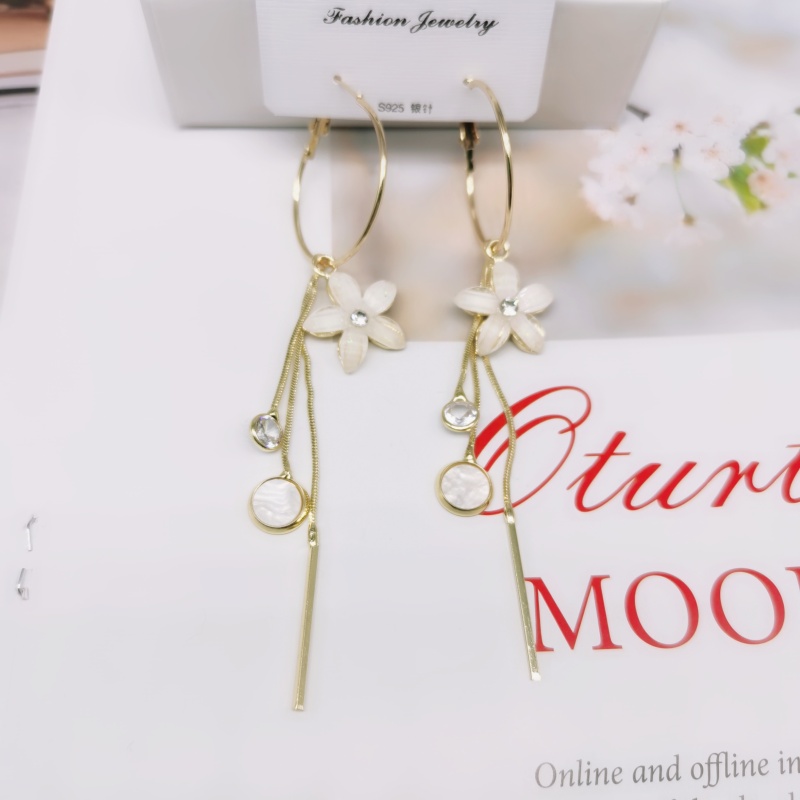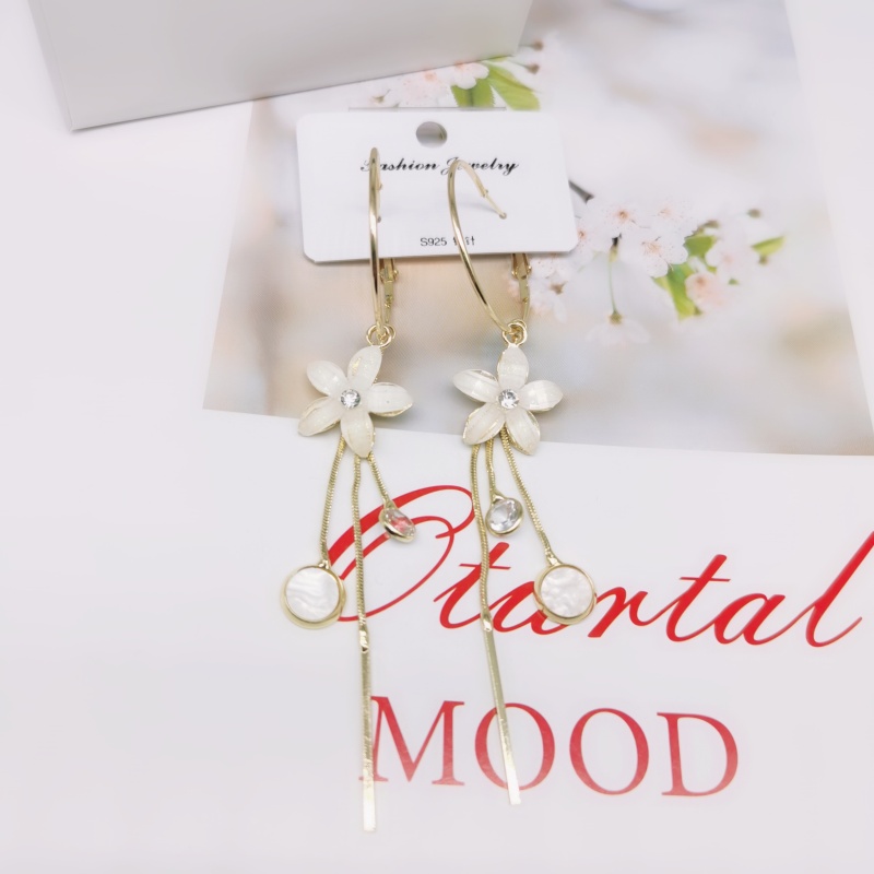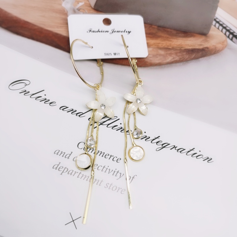 s925银针韩国夏季超仙长款耳环女水晶花朵流苏时尚显瘦耳坠耳饰潮