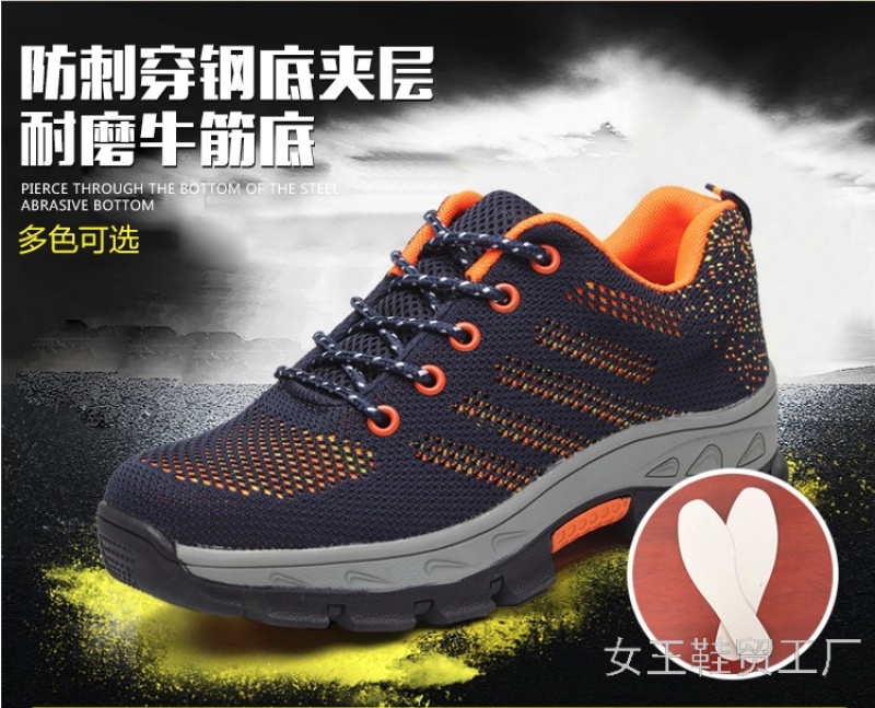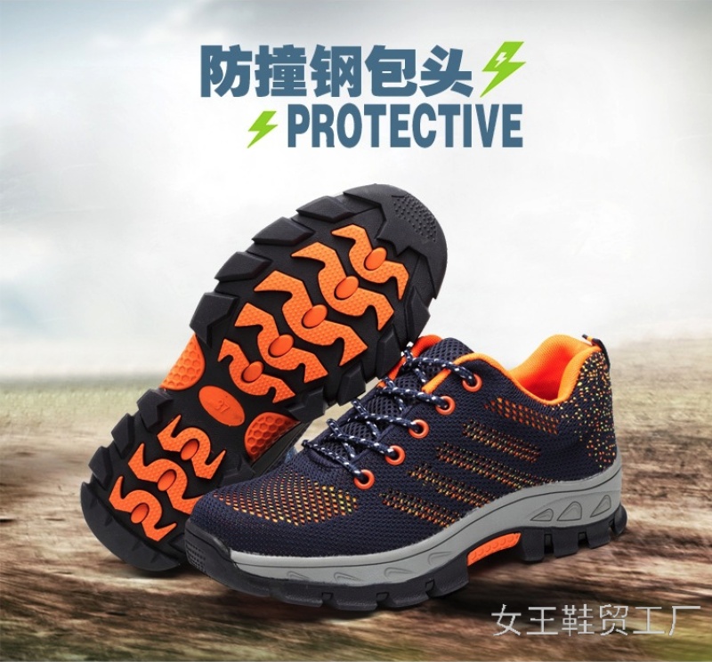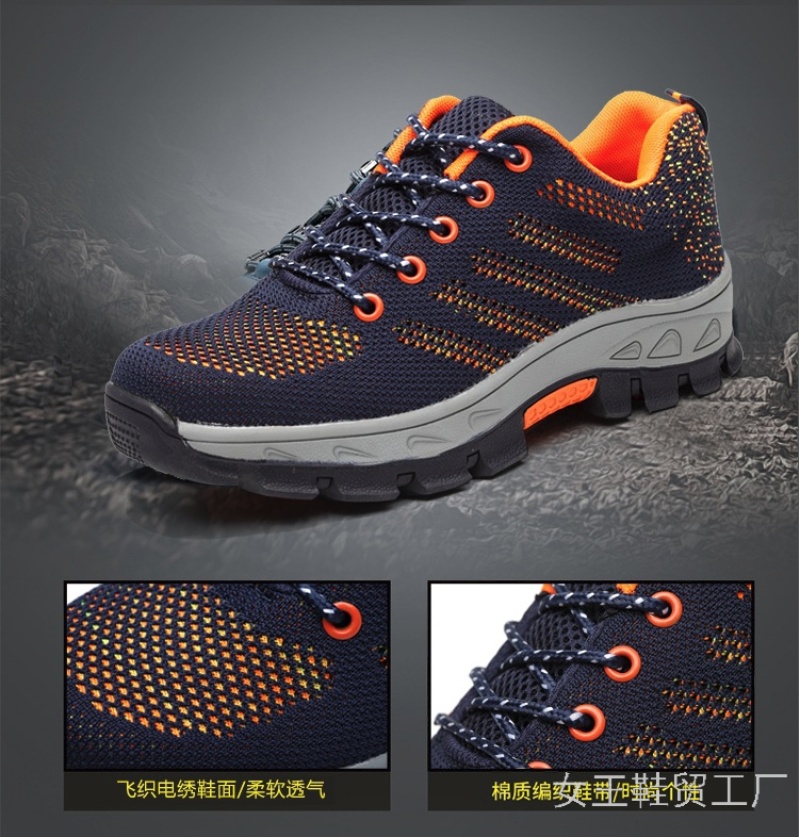 厂家直销飞织网面透气安全防护鞋防刺穿钢欧标钢包头劳保鞋批发