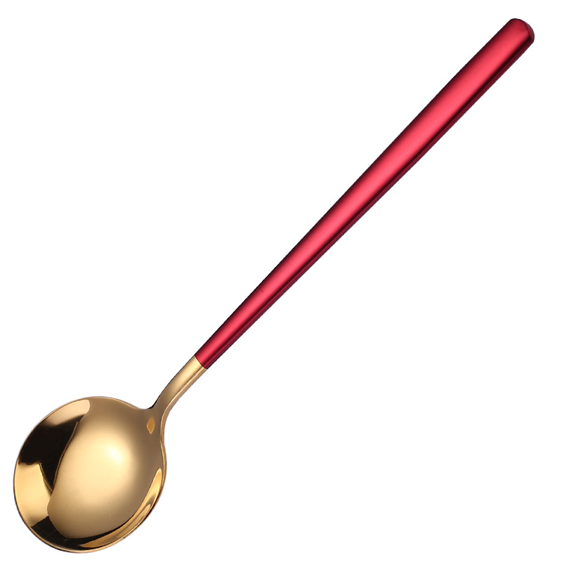 304不锈钢勺子韩式家用网红圆勺 创意烤漆甜品咖啡搅拌勺子喂养勺
