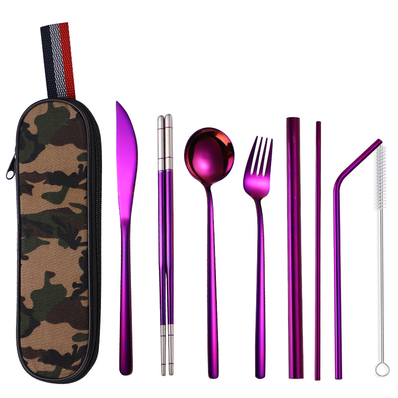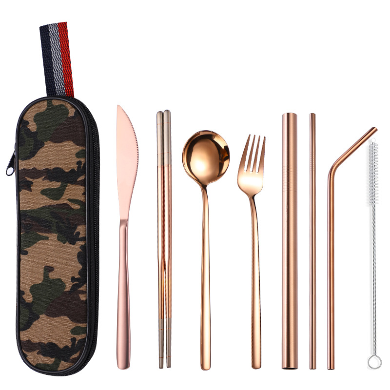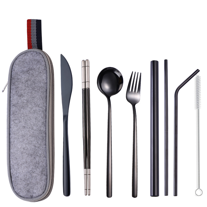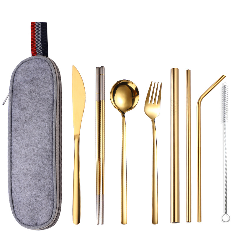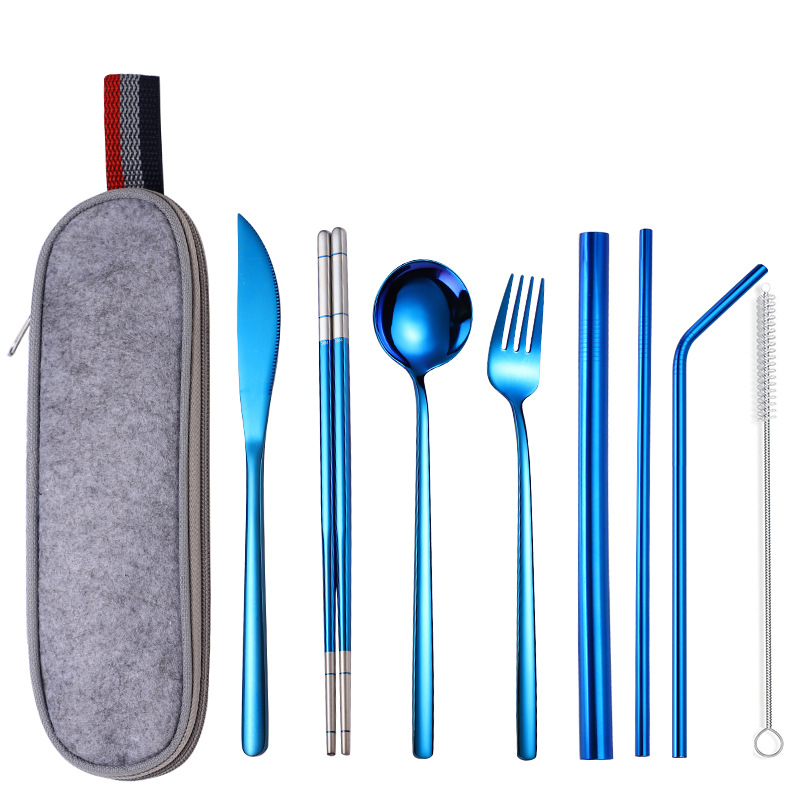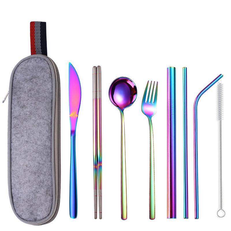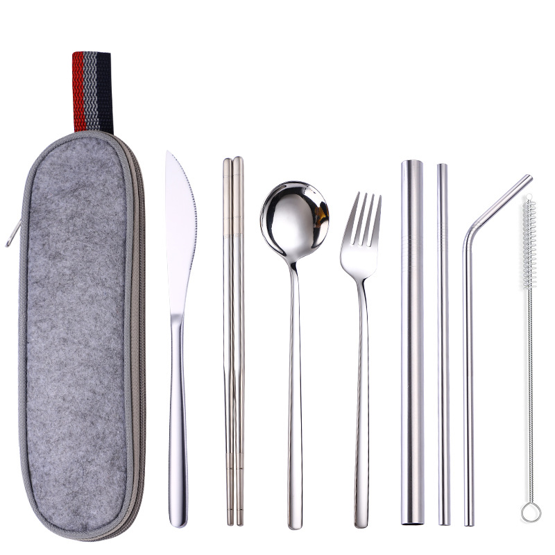 跨境304不锈钢刀叉勺吸管户外便携餐具套装 创意不锈钢勺筷子吸管