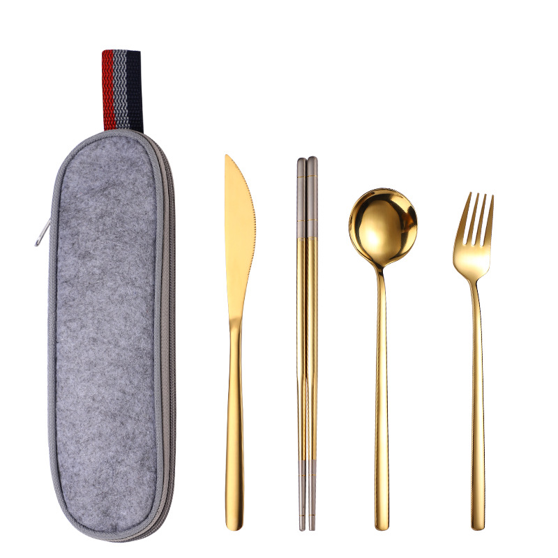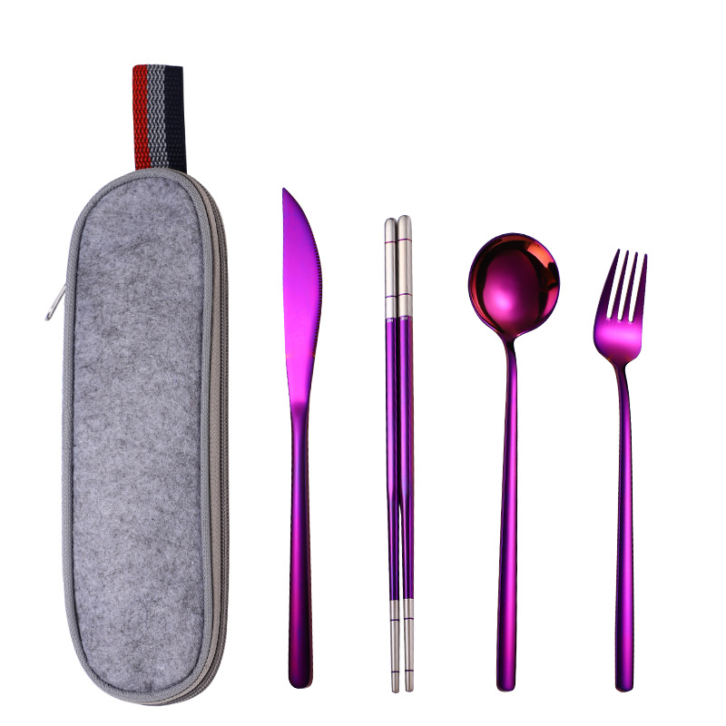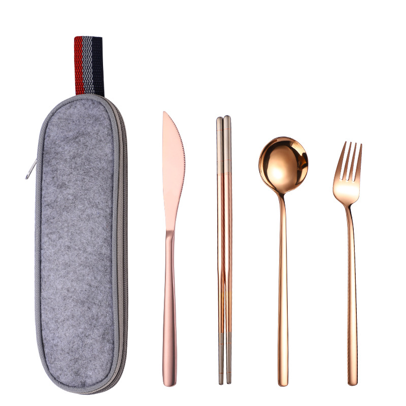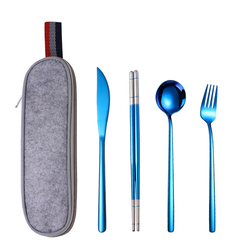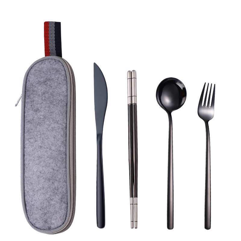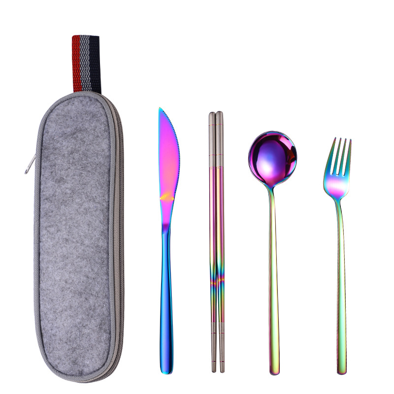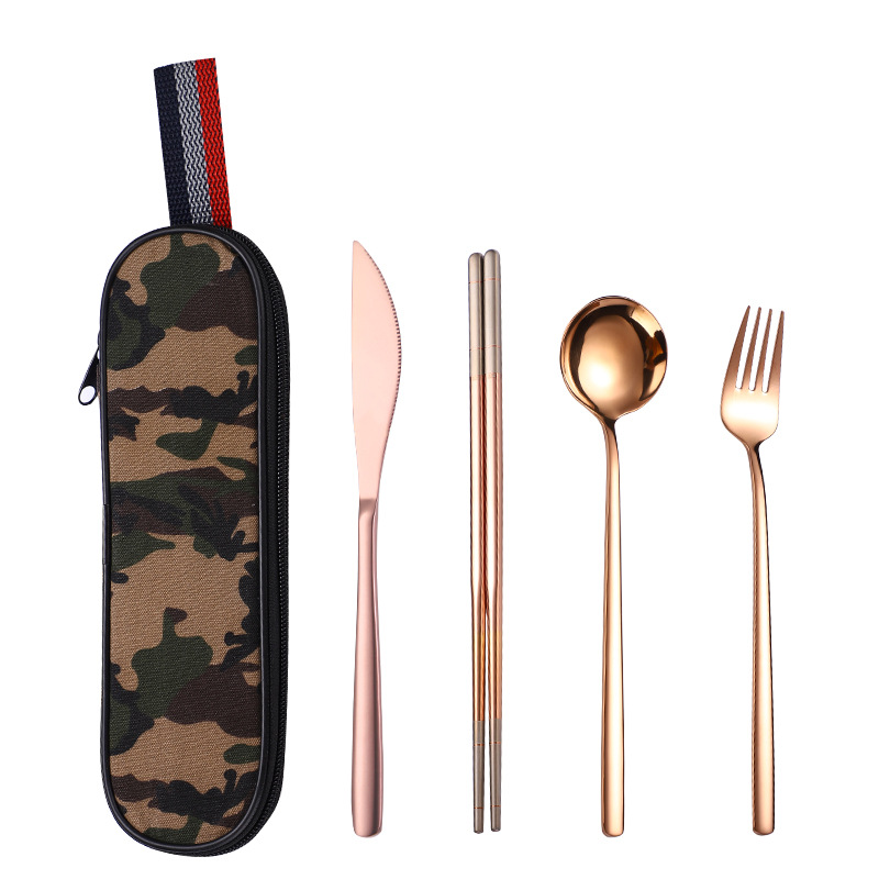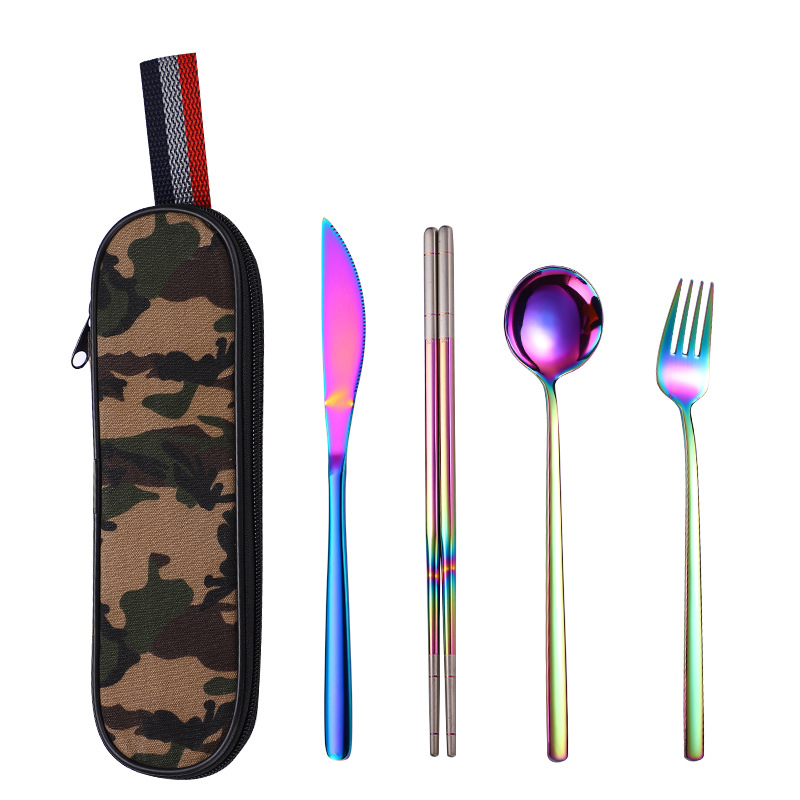 跨境304不锈钢刀叉勺吸管户外便携餐具套装 创意不锈钢勺筷子吸管