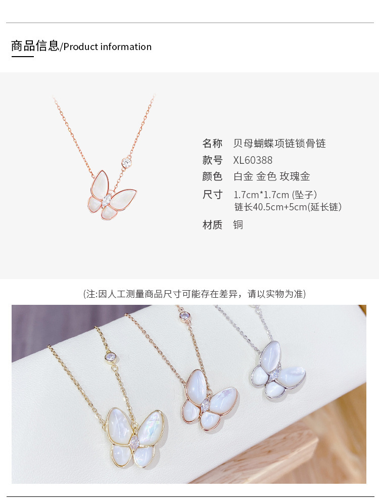 时尚贝母蝴蝶项链女日韩新款网红同款微镶锆石锁骨链项饰厂家批发