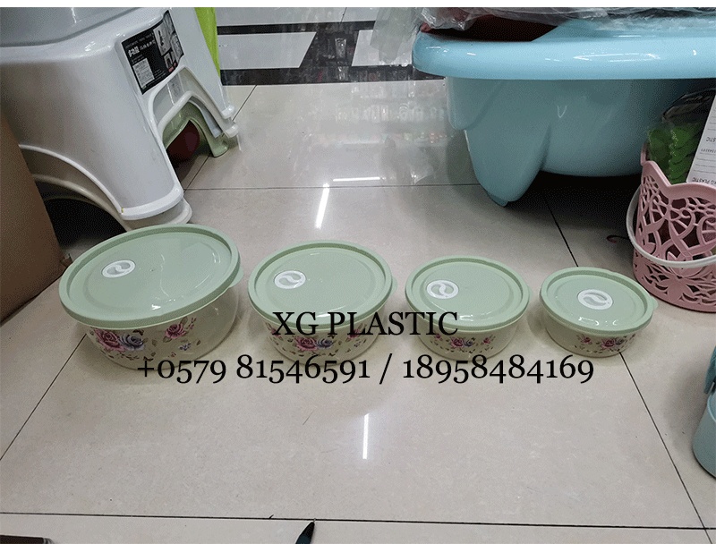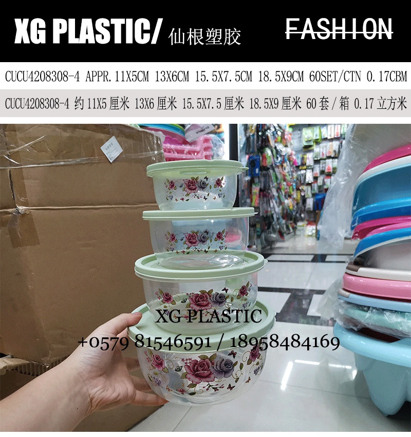圆形四件套保鲜盒新款时尚印花保鲜盒冰箱食品储物盒热销收纳盒