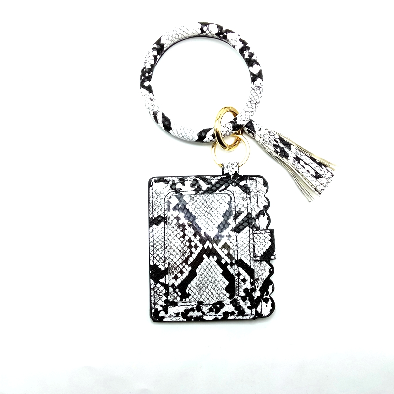 工厂直销印花皮革钥匙手环荔枝纹流苏手环扣白色滴油吊坠挂件