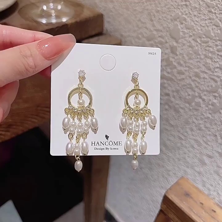 耳环饰品纯银针耳环女网红耳钉韩国长款气质流苏耳坠珍珠耳饰