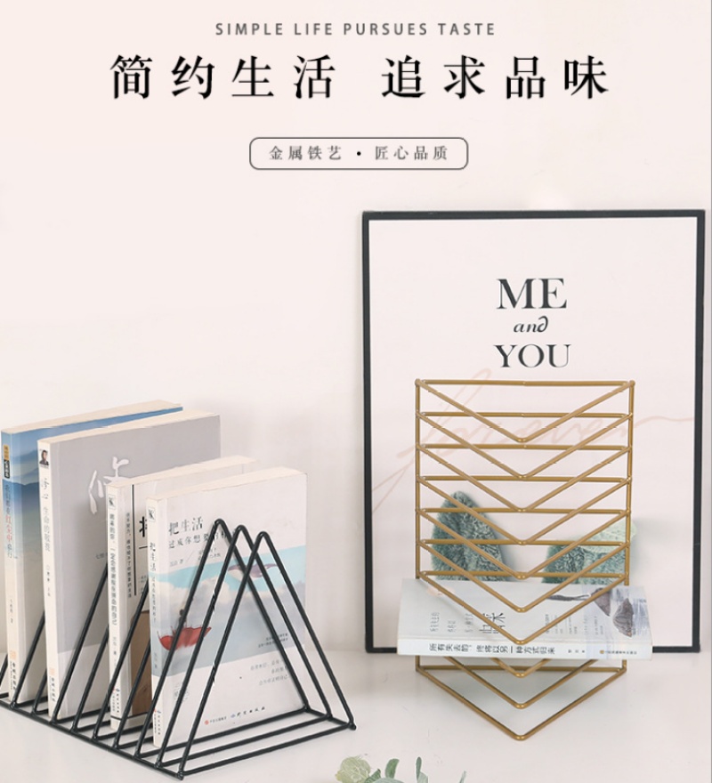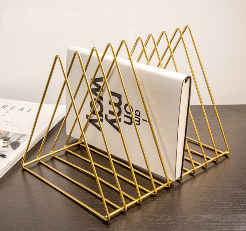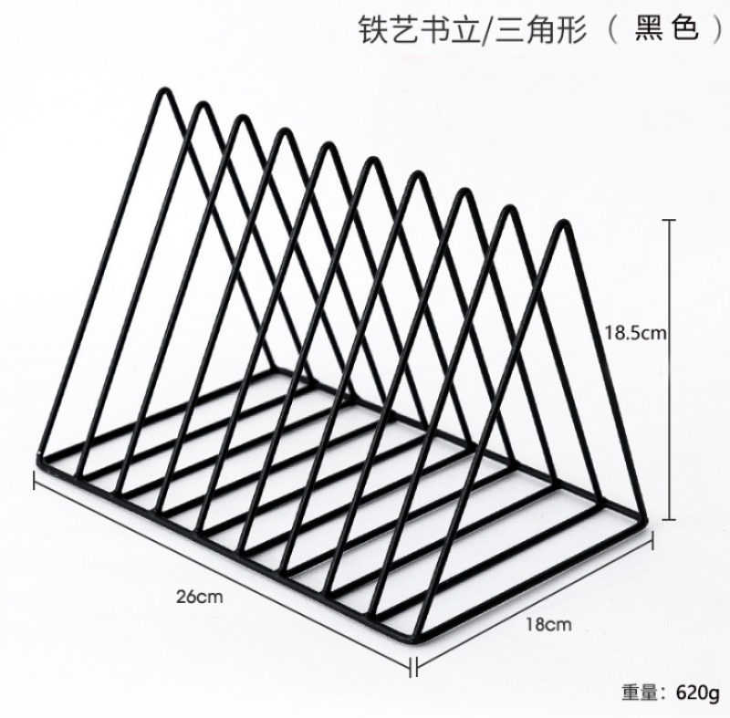 北欧桌面铁艺三角形书架办公室桌上书挡简约杂志收纳架子创意书立