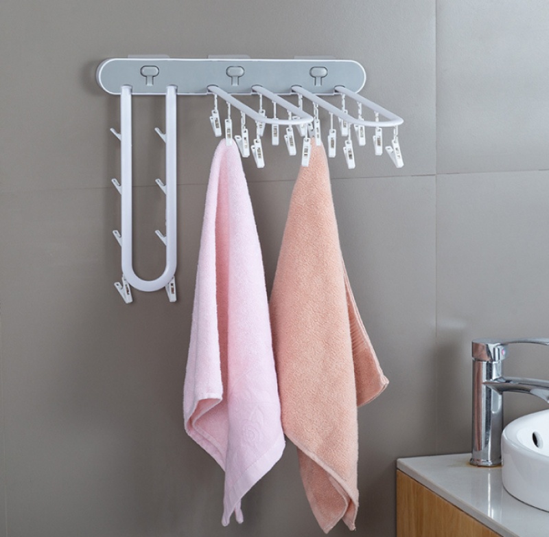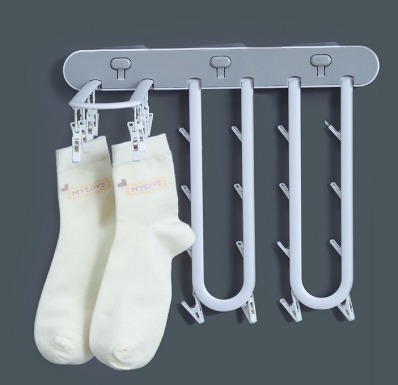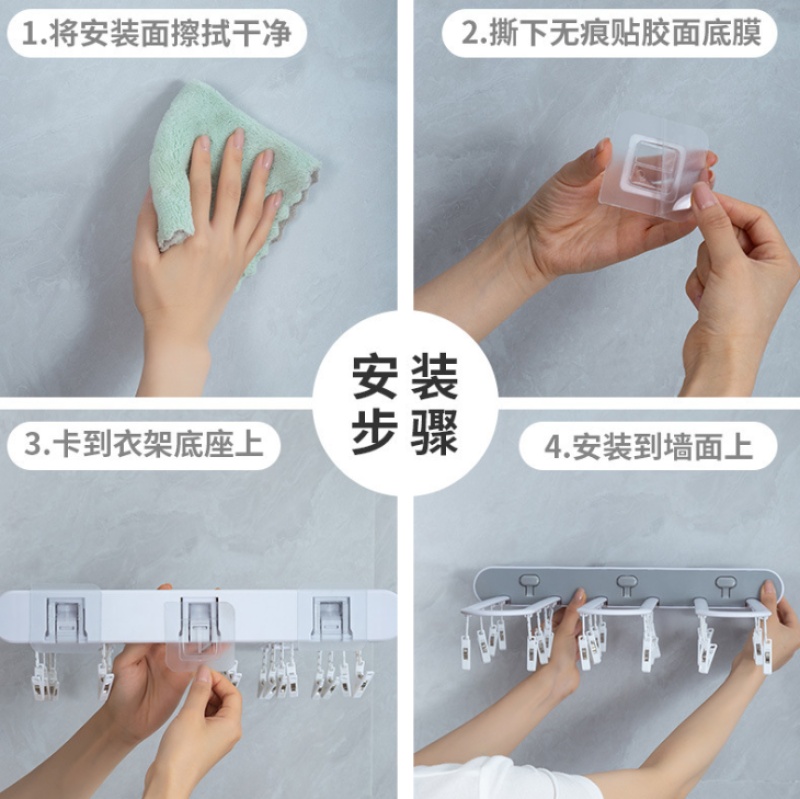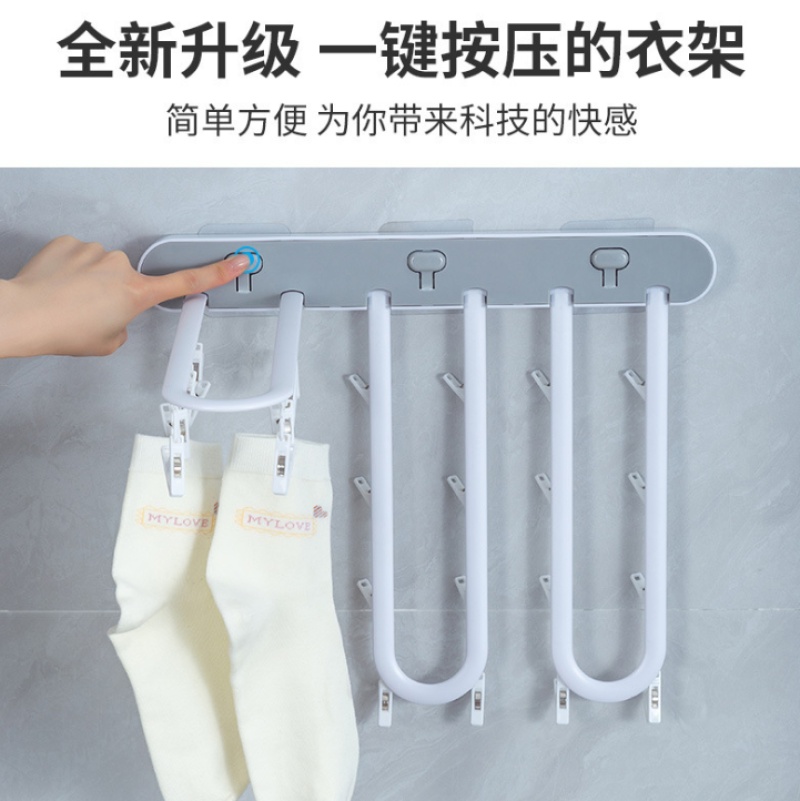 多功能壁挂式折叠衣架 便捷式按压塑料袜子夹大号24夹