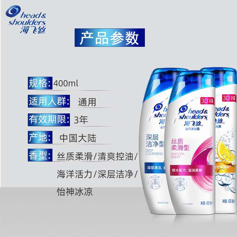 海飞丝洗发水400ml丝质柔滑发丝去屑清爽去油怡神冰凉海洋活力