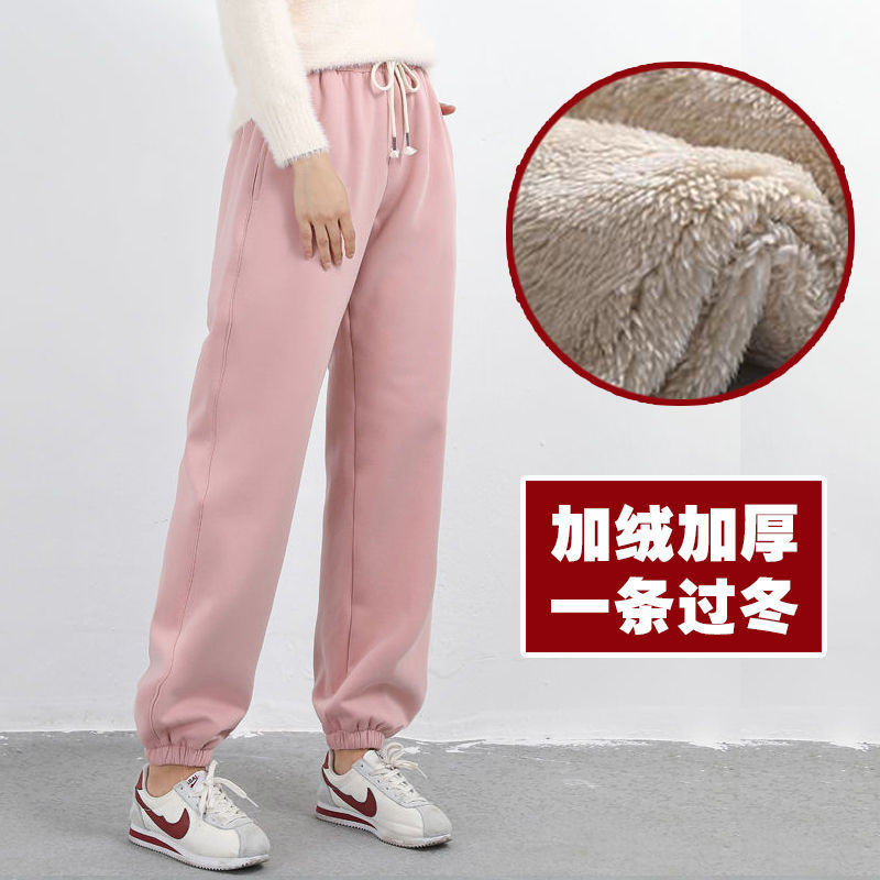 冬季加绒加厚仿羊羔绒裤子女学生韩版BF风百搭宽松哈伦裤运动卫裤